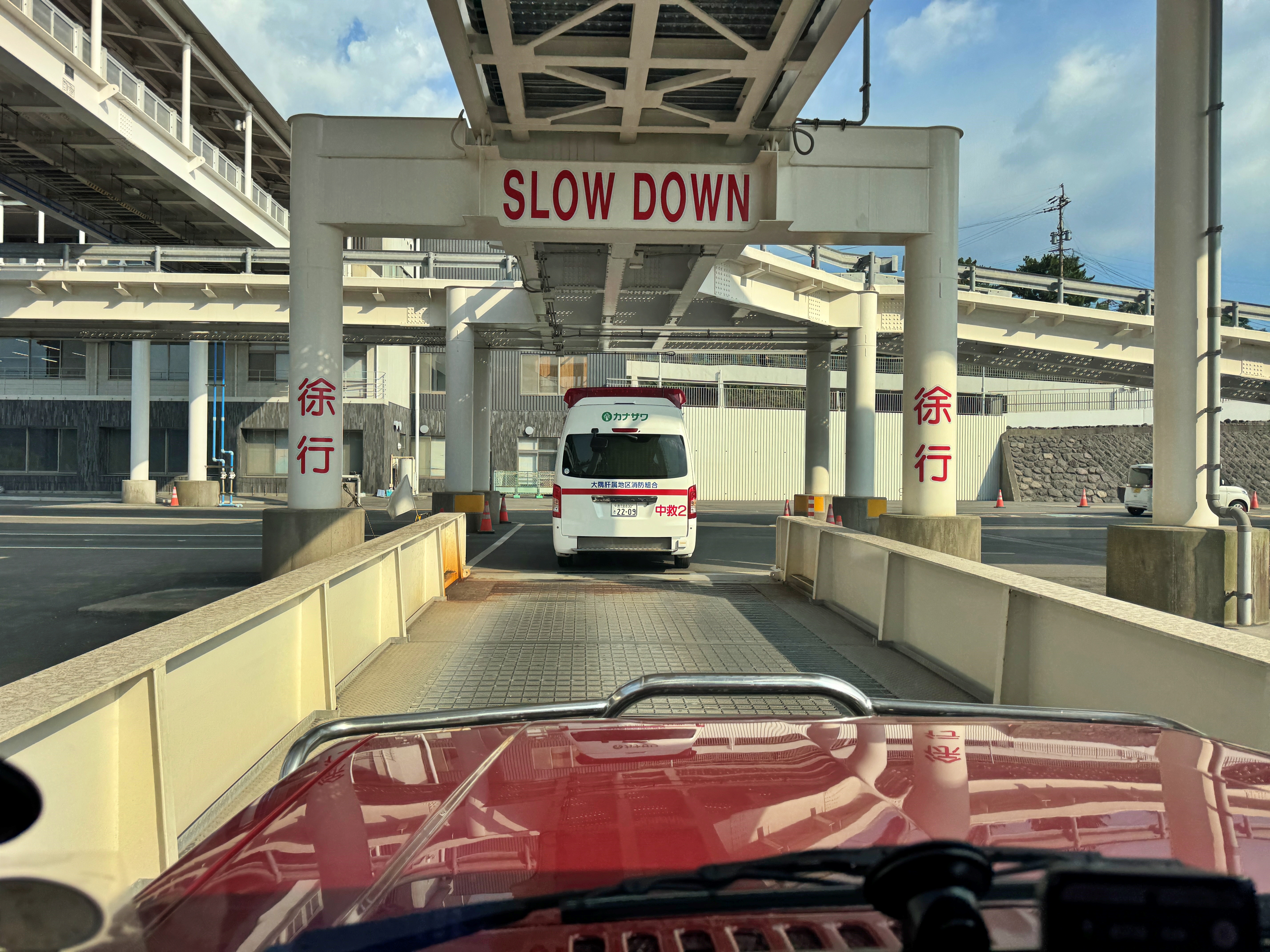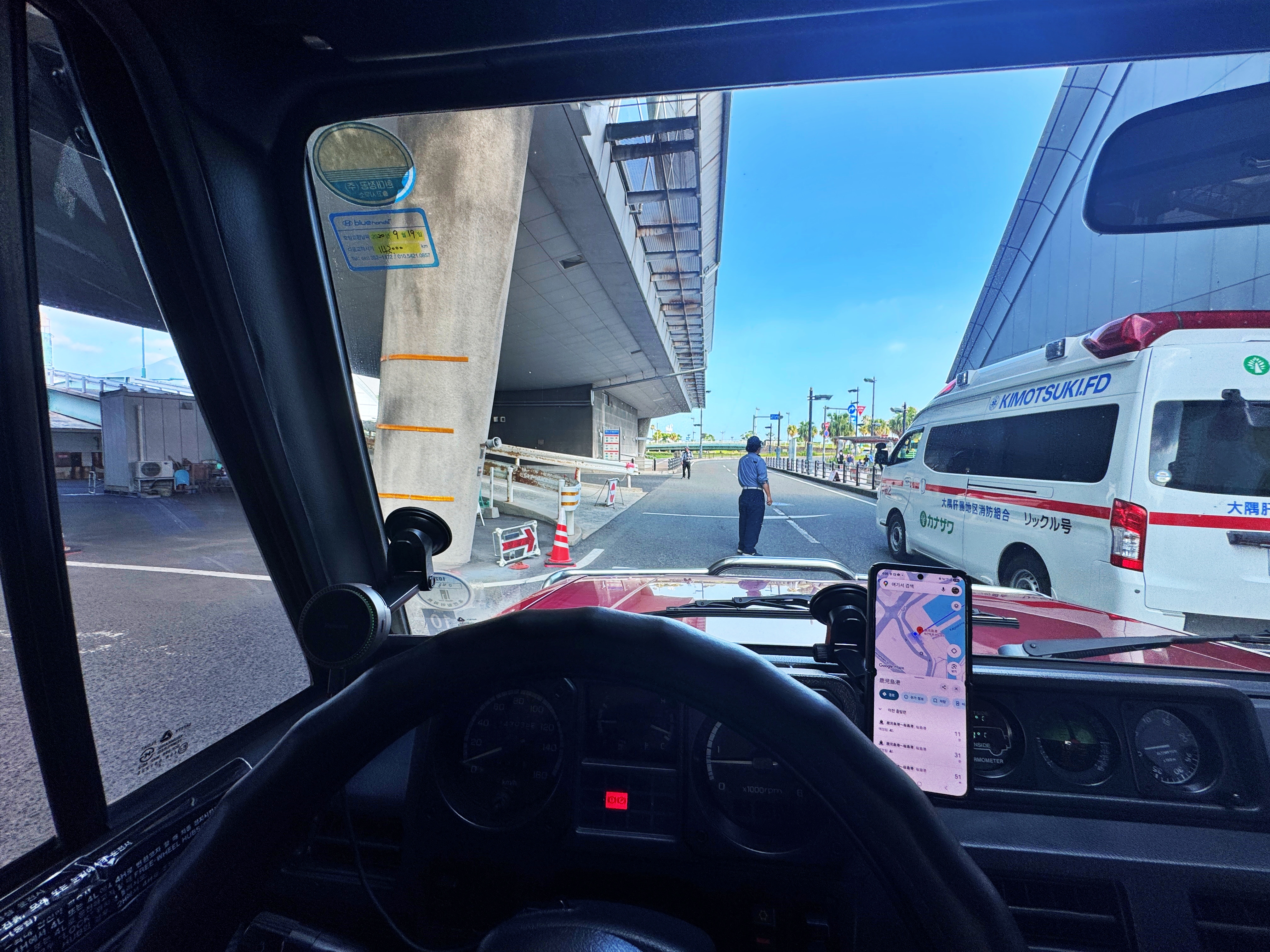 승선 순서대로 내리니 구급차가 당연 먼저 내리겠지요. 따라 내린 뒤 톨게이트에서 운임을 납부한 뒤 국도 224호선을 타고 나옵니다. 제원상 차량 길이가 4000mm라 미만단위로 끊어버려서 5m 미만 요금을 내고 나왔습니다.