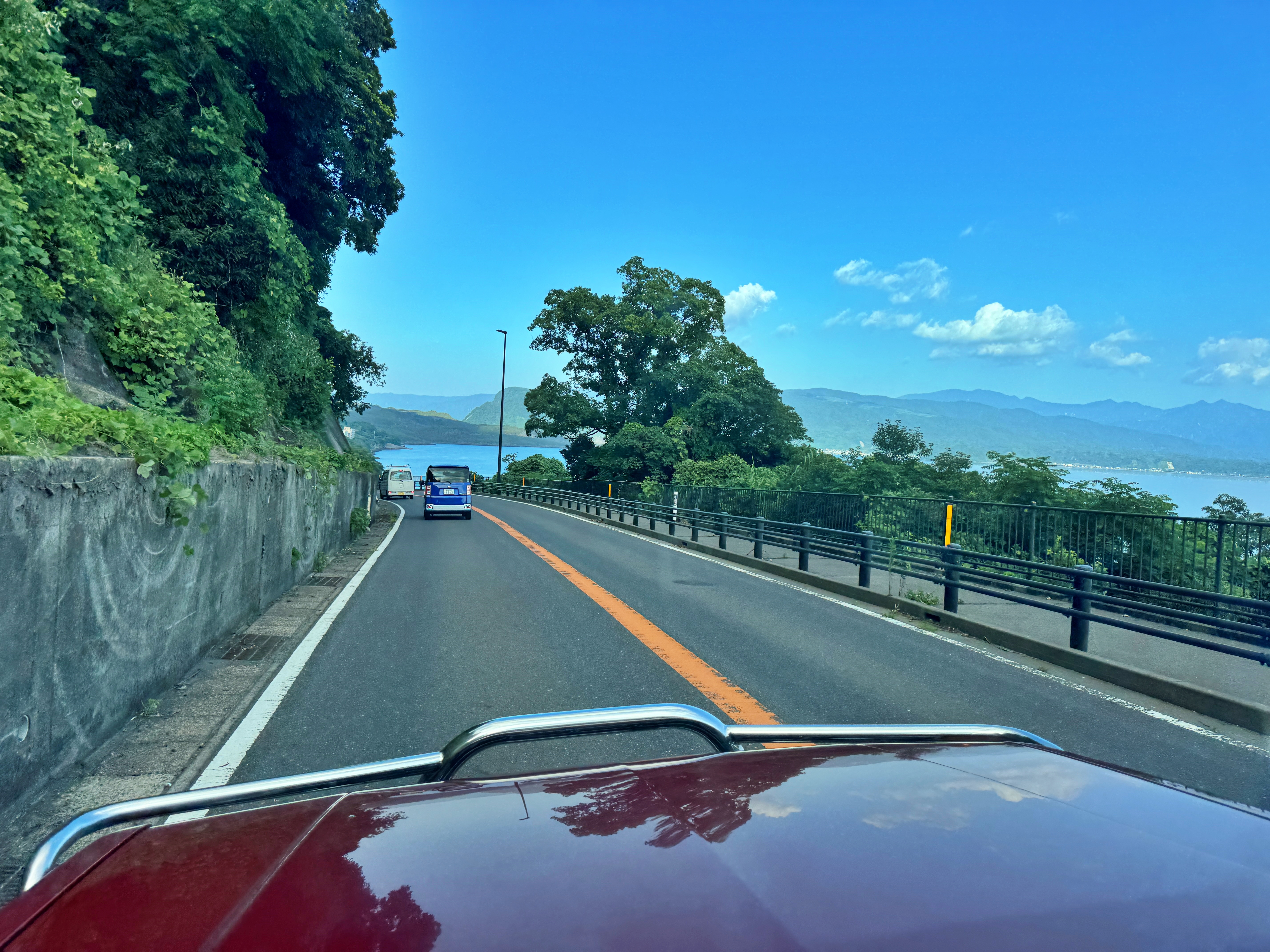 들어왔던 길과 반대로 가고시마만 안쪽 국도를 타고 가고시마로 나갑니다.