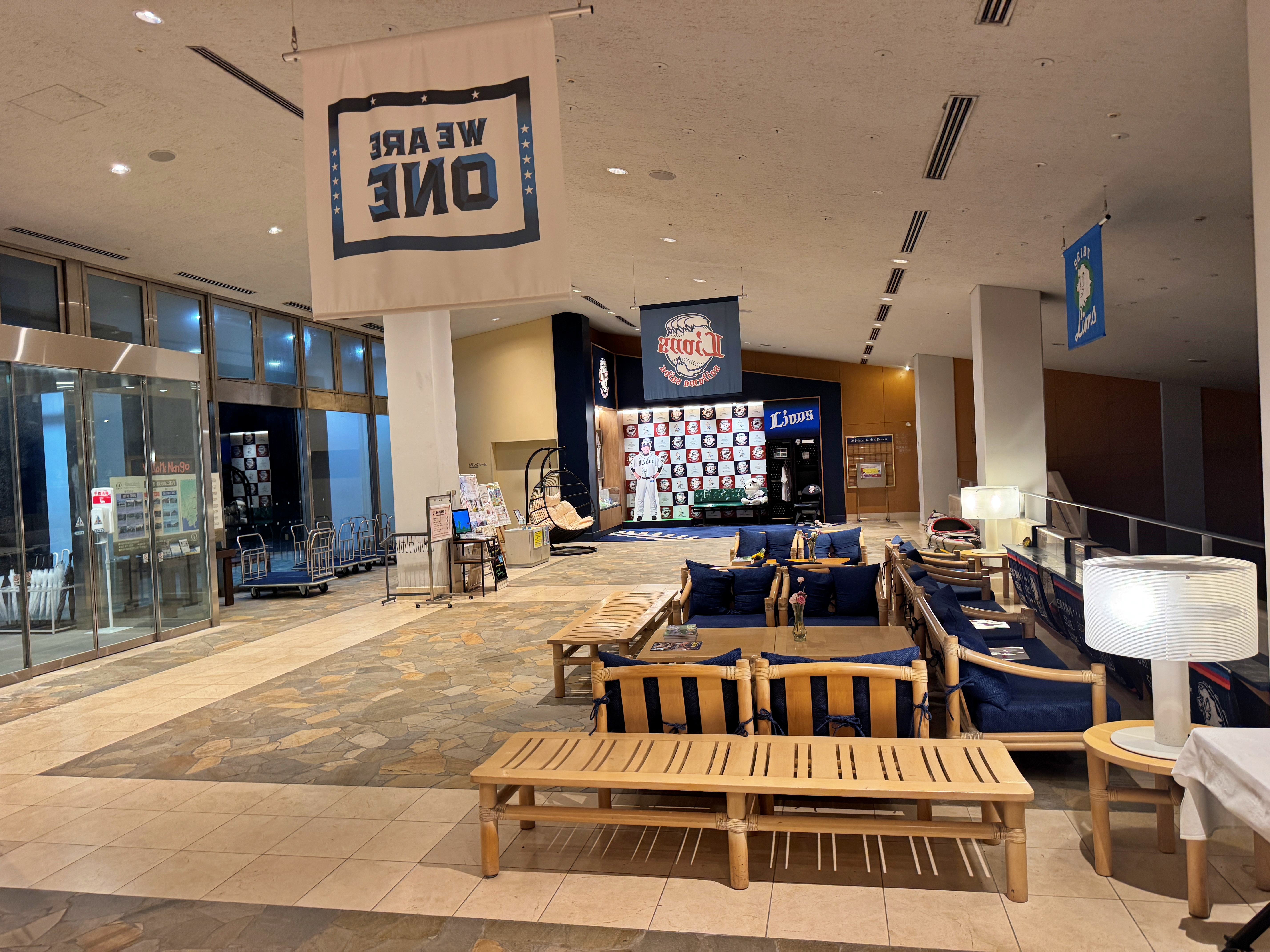 근데 600km 이상 떨어져 있지만 큐슈를 관할하는 소프트뱅크 호크스가 아닌 저 멀리 사이타마 세이부 라이온즈의 굿즈네요. 왜 그런가 봤더니 사이타마 세이부 라이온즈가 2004년부터 이 난고 지역의 난고 스타디움을 스프링캠프. 즉 전지훈련장으로 사용하고 있다고 하네요. 그래서 난고역도 이 야구단의 로고가 붙어있고, 이 호텔 역시 야구단이 스프링캠프 시기에 머물다 보니 사이타마 세이부 라이온즈의 로고와 굿즈로 가득했습니다.