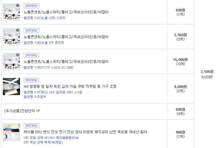 조명을 설치하기 위해서는 전기를 끌어와야 했는데, 전기는 기존 주택 배전함에서 끌어왔습니다. 대략 필요한 준비물들을 생각하고 인터넷으로 주문을 넣었습니다. 사실 12일 혹은 13일에 진행하려 11일에 주문했는데, 물건이 14일에 발송하여 15일에 도착했네요. 고로 19일에 작업을 진행했습니다.