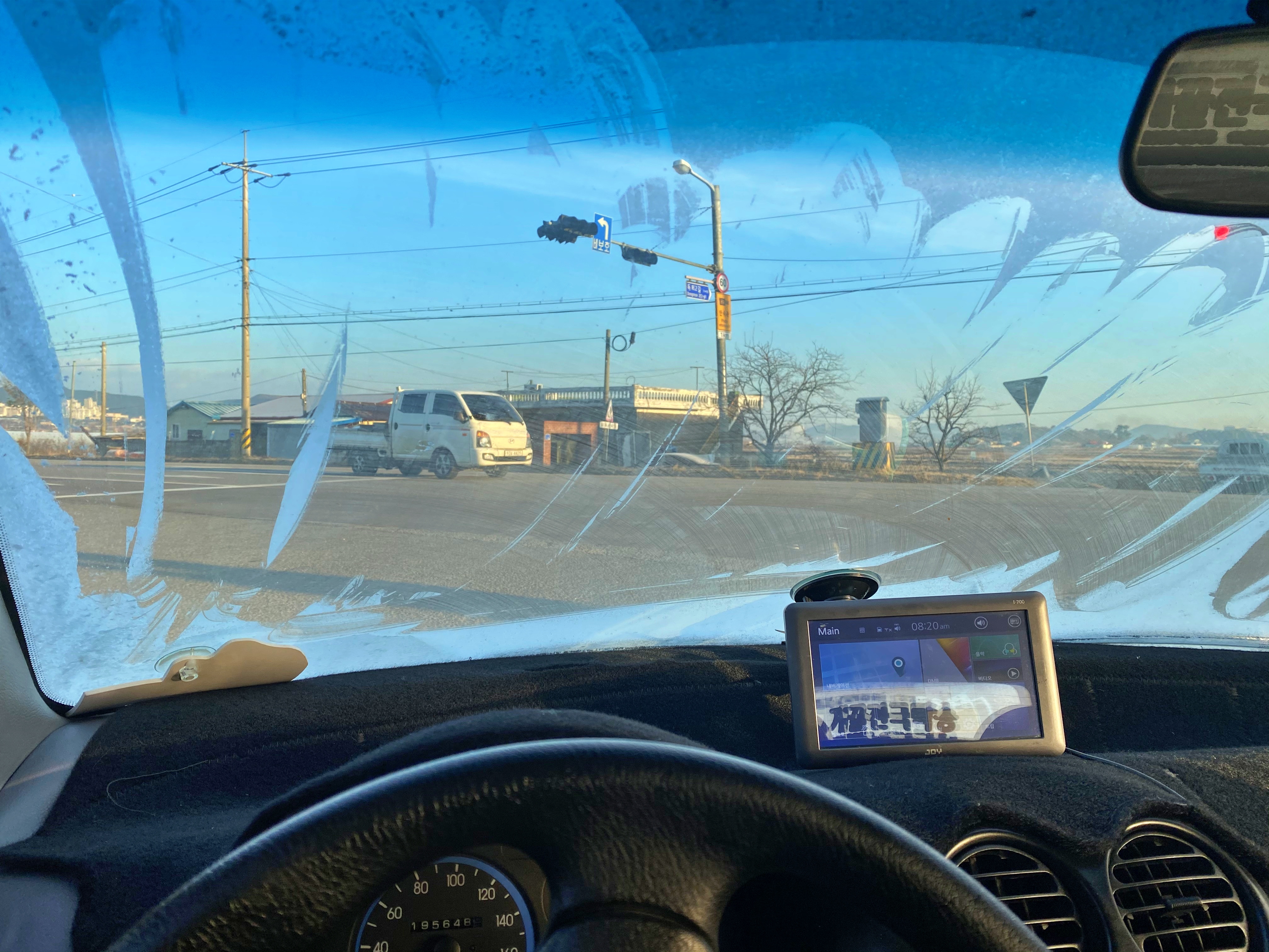 그냥저냥 예열하며 히터를 켜두면 녹긴 합니다만, 저는 그럴 시간적 여유가 없는 사람이기에 일단 시동 먼저 걸어두고 가방에서 카드를 꺼내 앞 유리창과 사이드미러 그리고 사이드미러가 보일 수준의 측면 유리와 뒷유리를 긁어주고 출발합니다. 달리면서 열을 받고 뜨거운 바람이 나온다면 유리창은 금방 녹으니 말입니다.