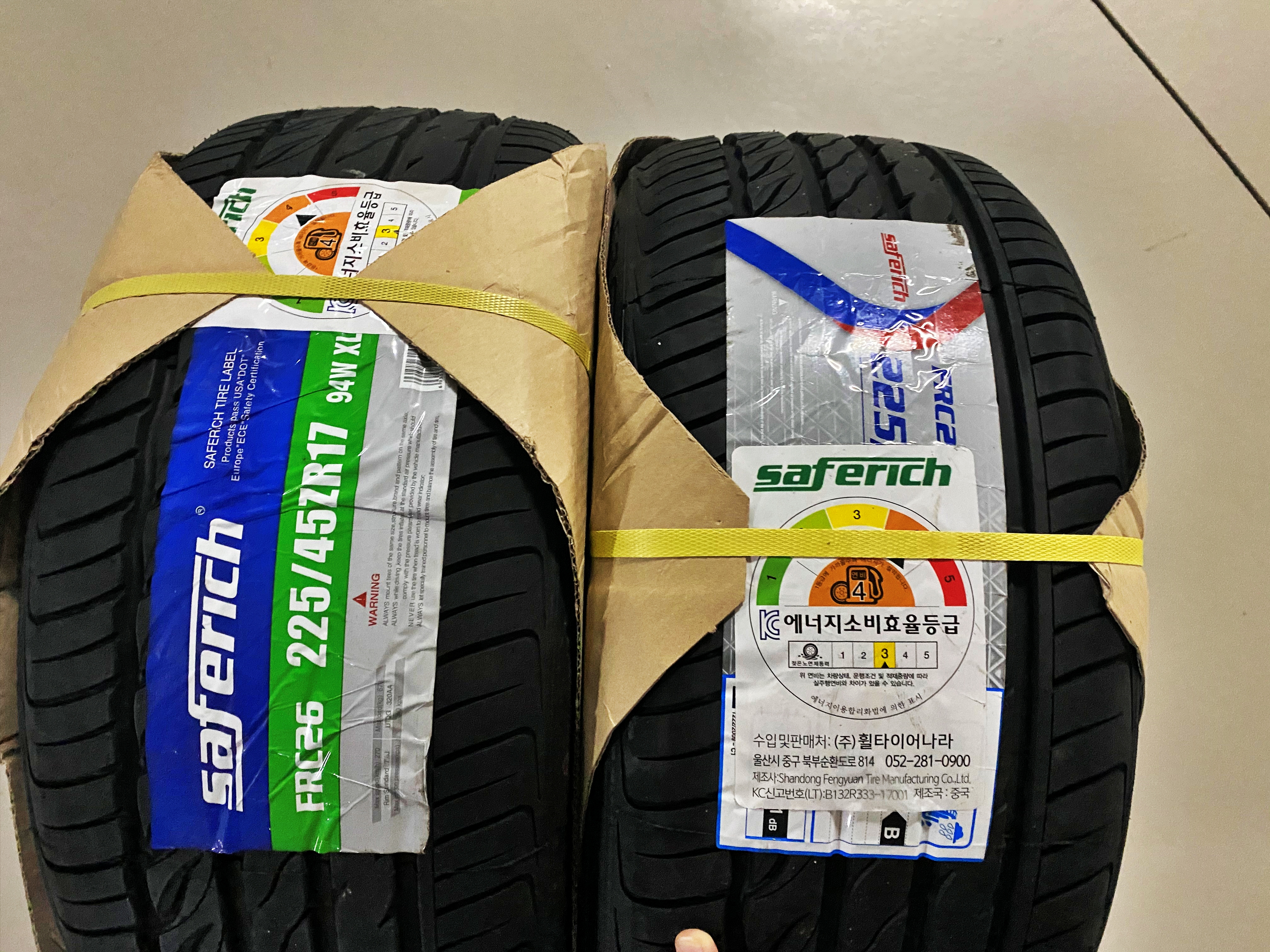 뭐 얘기하자면 깁니다. 작년 겨울즈음이였나? 타이어 한짝의 사이드월이 살짝 패였는데, 그걸 보고 친구가 선물이라고 중국산 타이어 하나를 주문해서 보내주더군요. 근데 당시만 하더라도 트레드가 많이 남아있어 타이어를 바꾸기도 아까웠고 중국산 타이어를 한짝만 끼우기도 뭐했던지라 그냥 방치만 해뒀었고 지난 여름즈음에 슬슬 타이어를 바꿀 시기가 도래하여 한짝을 더 구입해놓았습니다.