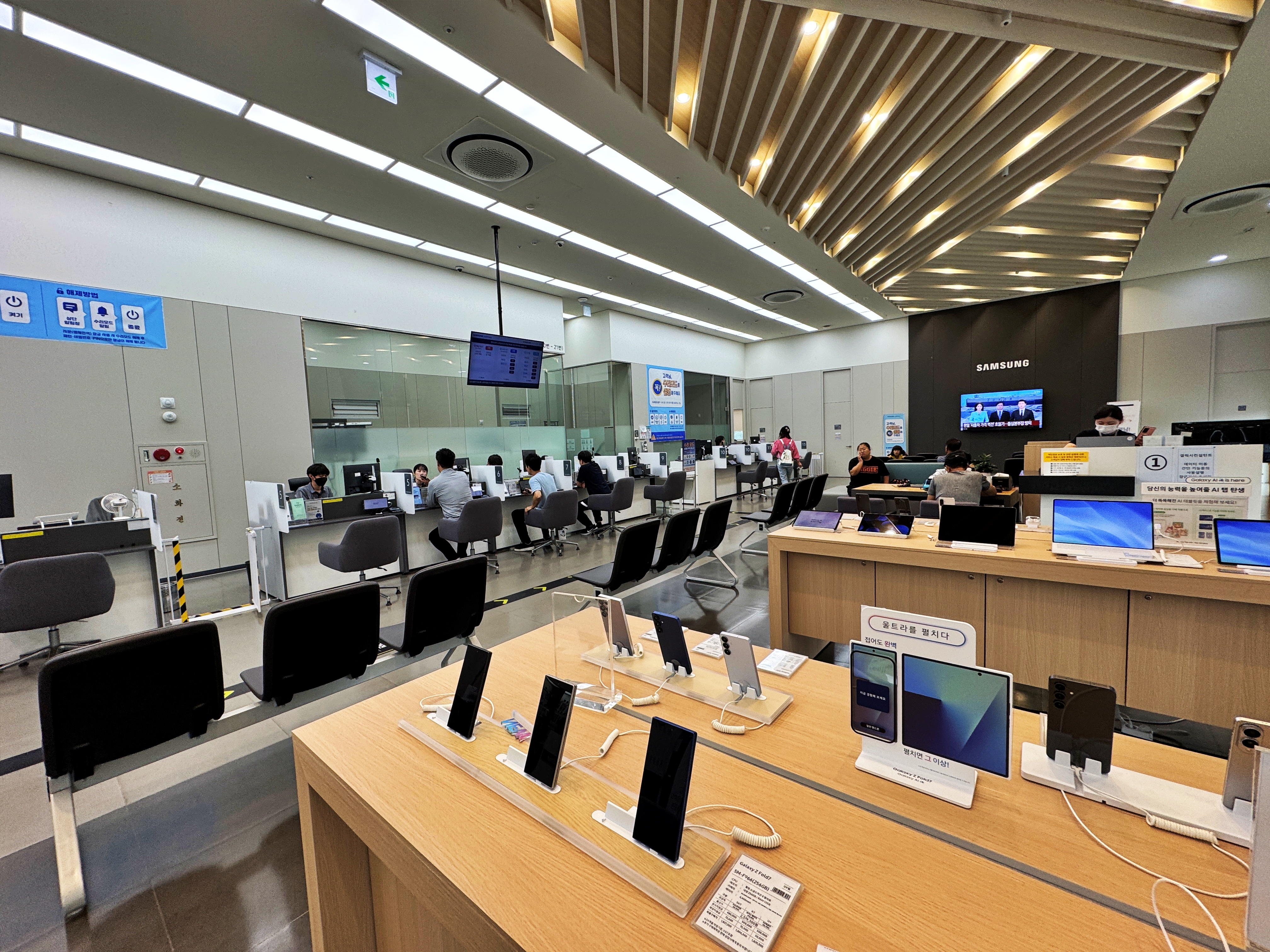 이번에 아주 얇게 잘 빠진 폴드7 플립7 그리고 주력 기기인 S25 시리즈가 전시되어 있습니다.