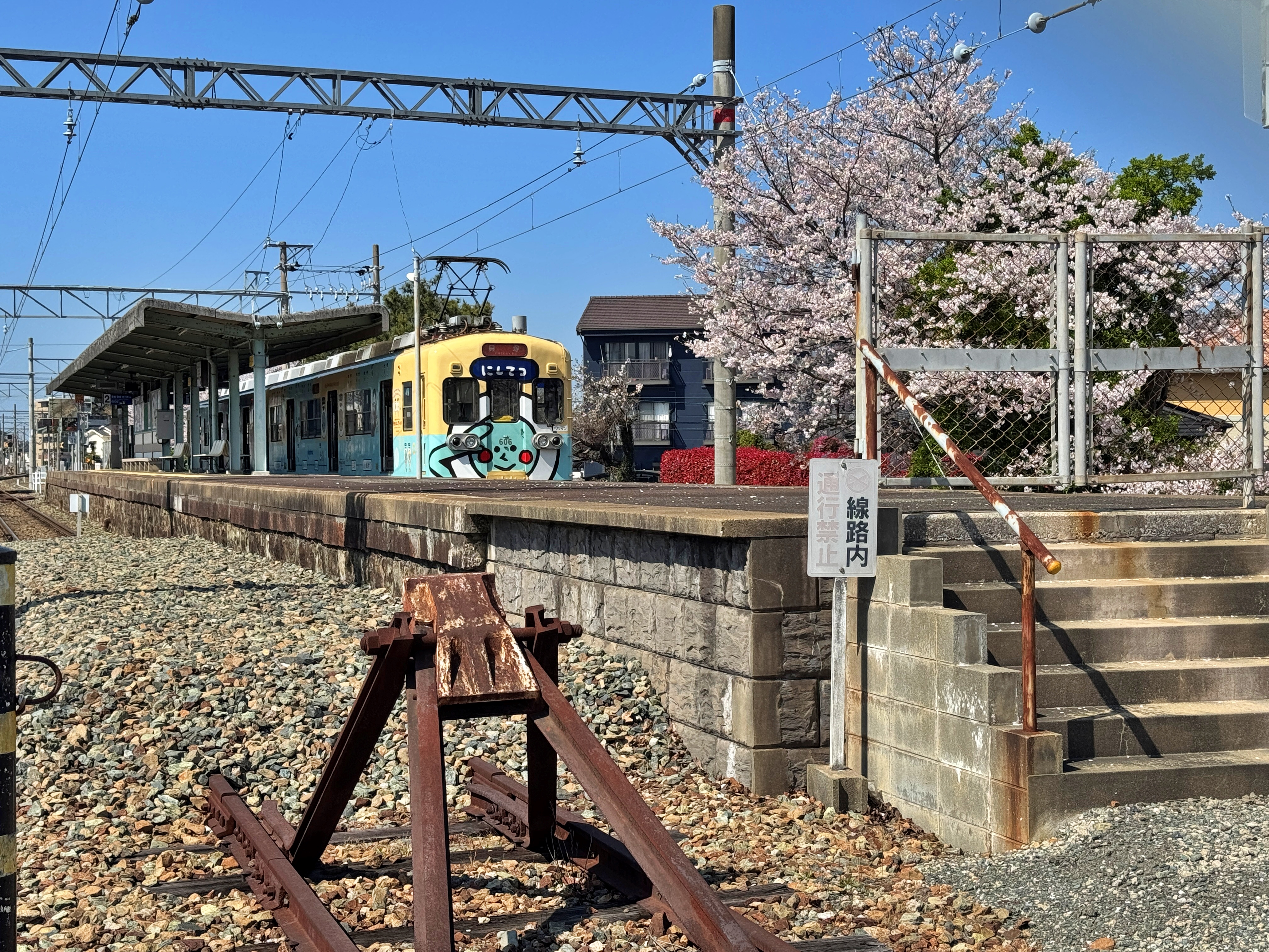 진짜 고양이도 아니고 고양이 모형이네요. 밤에 마주하면 더 무서웠을겁니다. 그렇게 주택가와 고등학교를 지나니 카이즈카선을 타고 왔으면 바로 왔을 니시테츠신구역이 나옵니다.