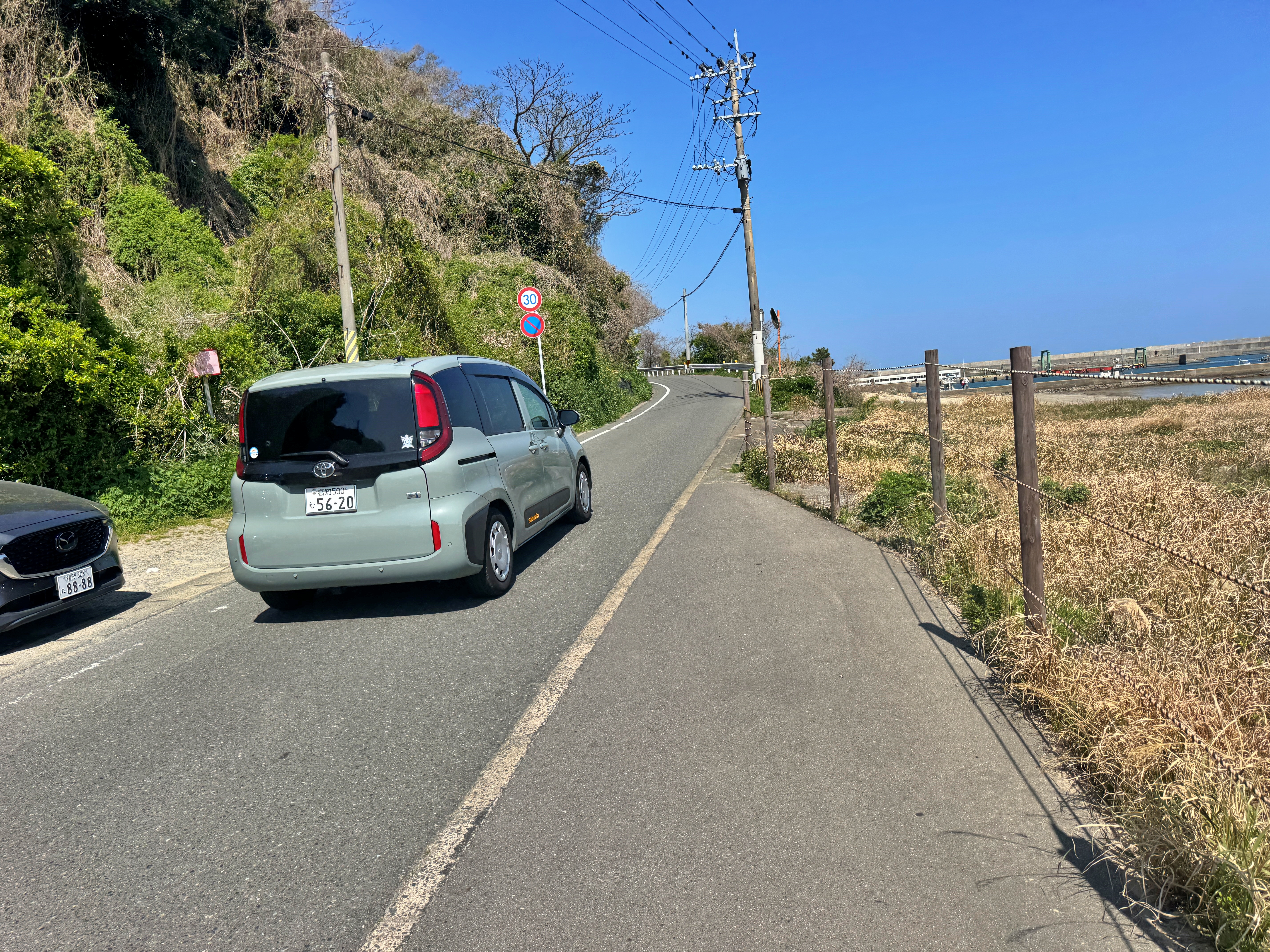 이 협소한 커브만 꺾으면 항구가 나옵니다.
