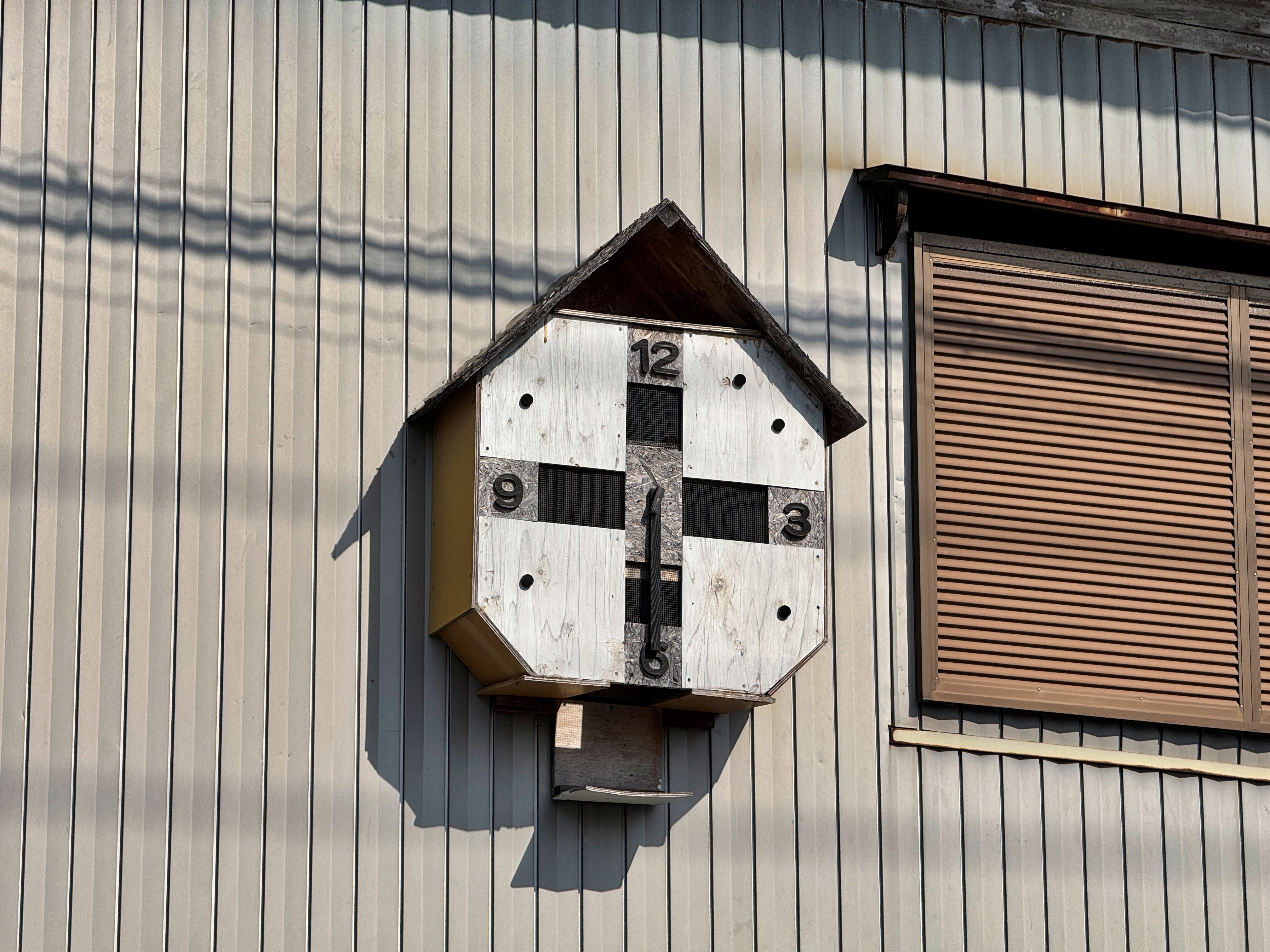 상가의 셔터는 내려갔고 꽤 오랜 세월 영업을 하지 않았으리라 추정되는 상태였습니다. 이 건물 한켠에 붙어있는 목조 시계가 인상적이라 사진으로 남겨두었네요.