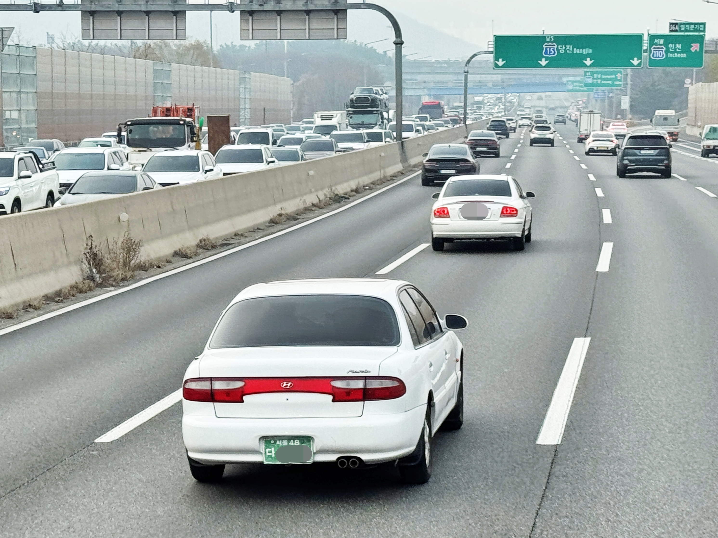 95년 출시 초기에 출고하여 한 자리 지역번호판이 부착된 차량이 예전에도 극소수 보였었는데, 전국번호판 시행 역시 20년이 지난 지금 시점에서는 두 자리 지역번호판도 이렇게 보기 어려운 상황에서 과연 남아있는 개체가 있으련지 모르겠습니다. 그렇게 분기점까지의 짧은 만남을 뒤로하고 제 갈길로 향했습니다. 앞으로도 오랜 세월 차주분과 함께 지역번호판을 유지하며 잘 달려주었으면 좋겠습니다.