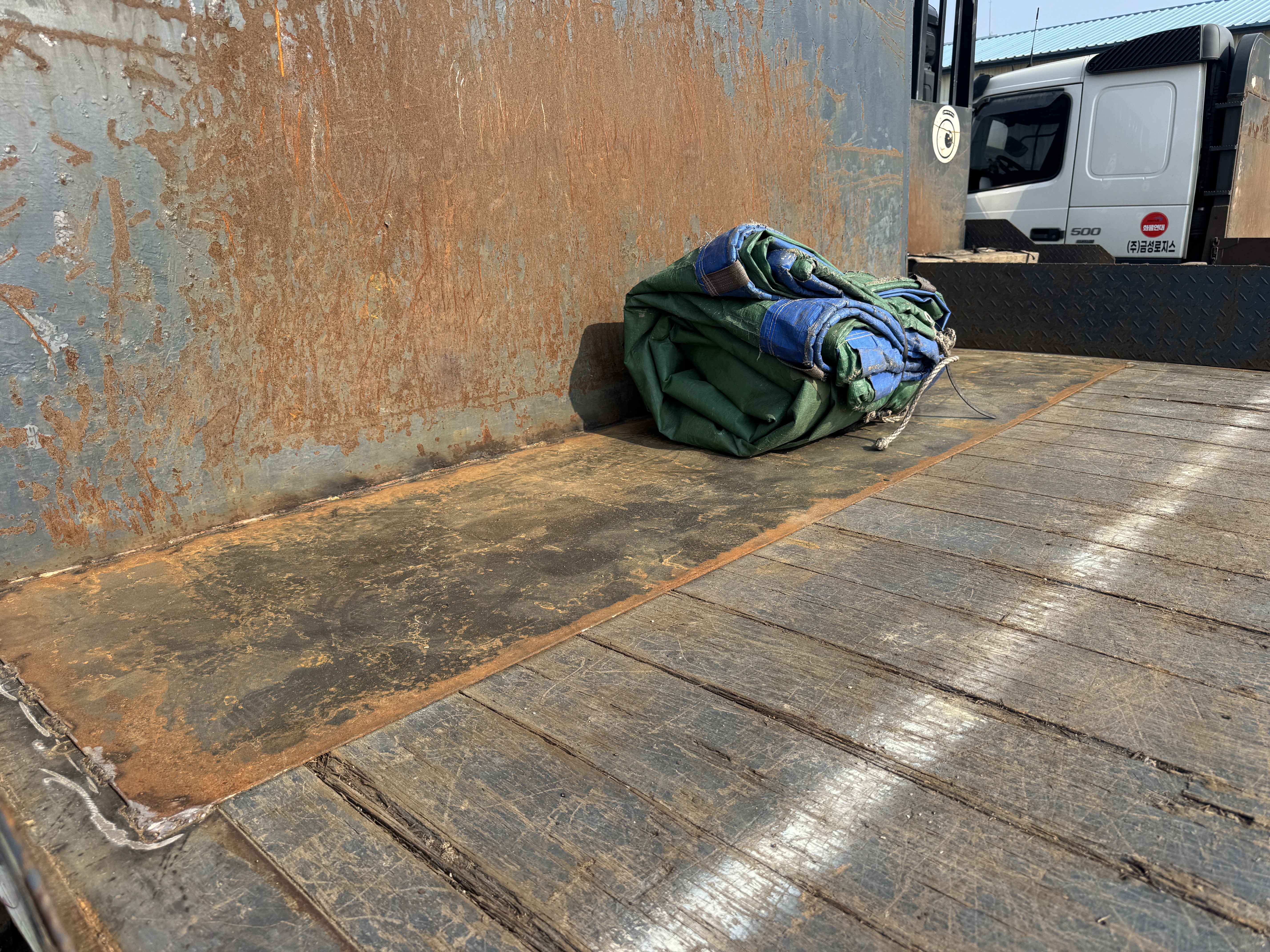 적재함 벽 아래. 나무나 자재를 놓는 자리도 철판을 덧댔습니다.
