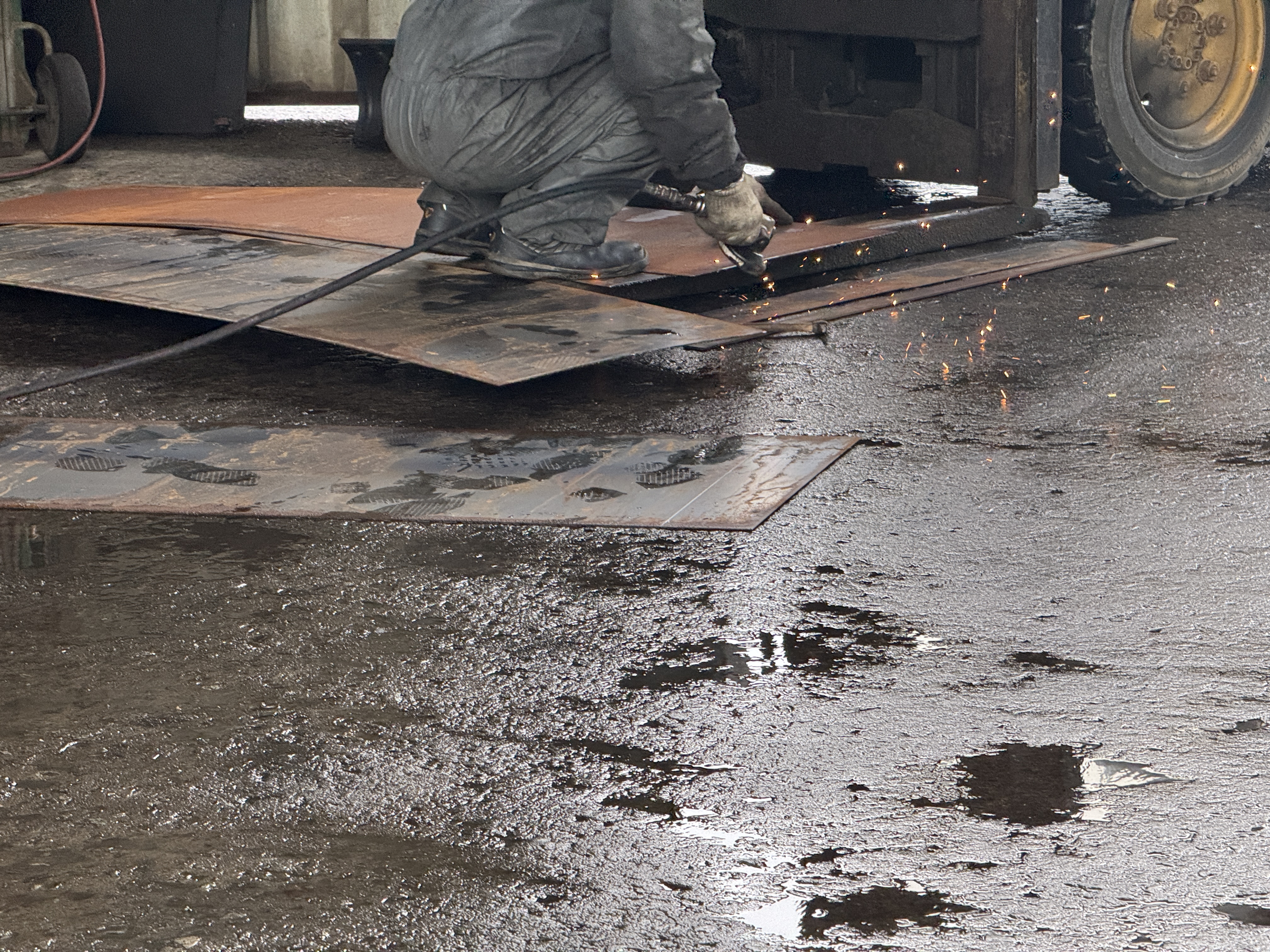 적재함 위에 올릴 철판을 가공합니다.
