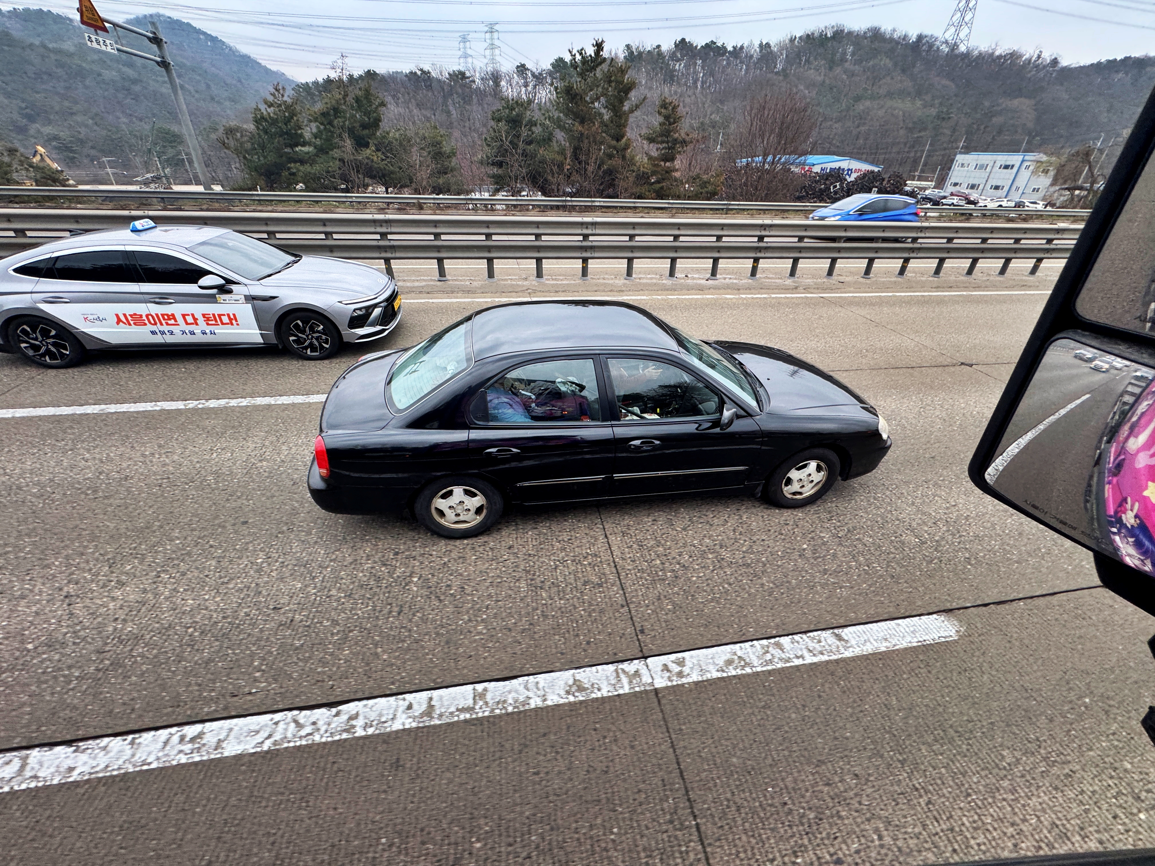 충남45 지역번호판을 부착하고 고속도로 정체구간을 지나고 있었습니다.