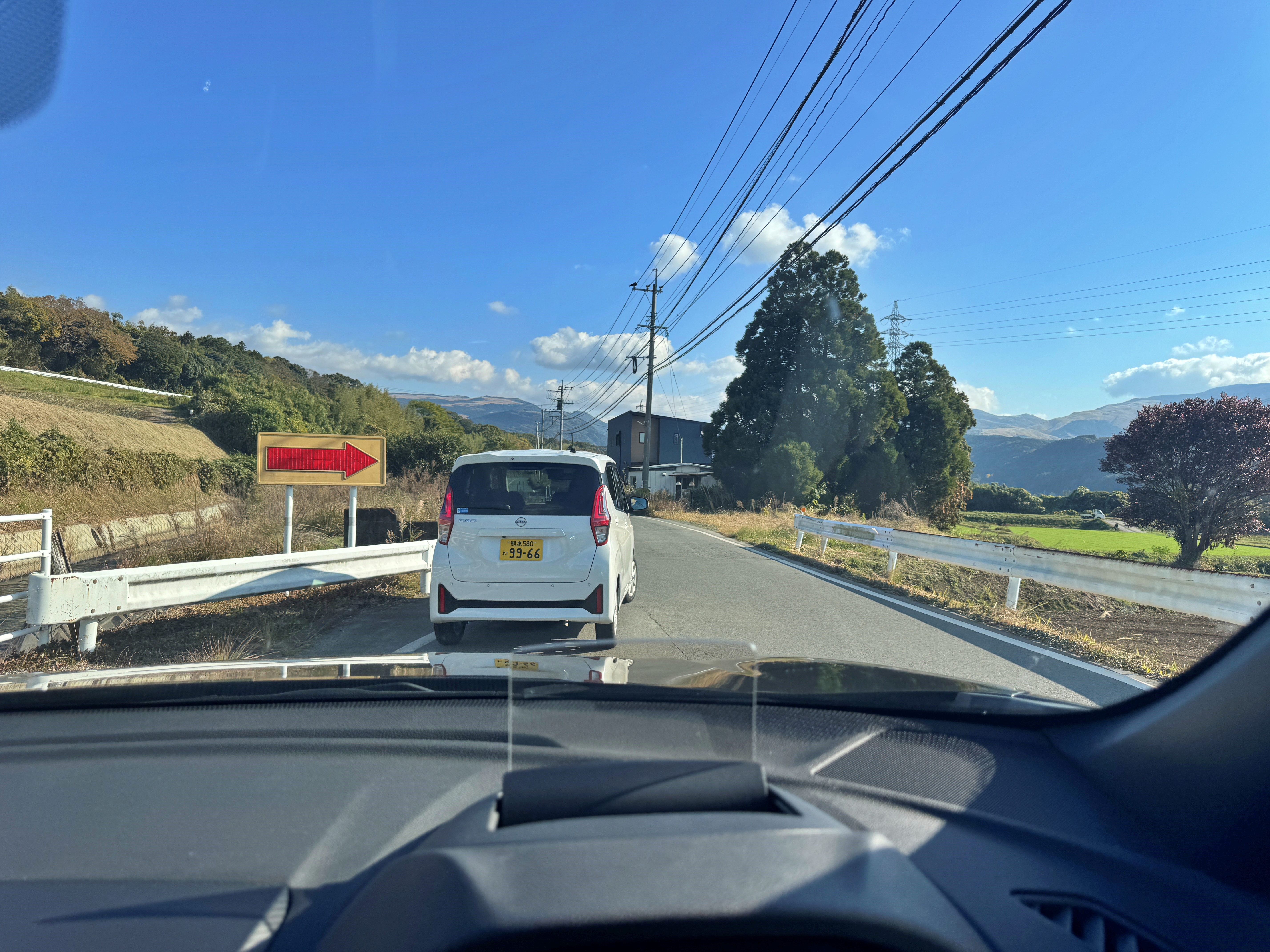 그래도 아침에 오니 속도가 붙는군요. 중간에 야생 사슴이 도로 위에 나와있기도 했었지만 무사히 내려왔습니다. 후쿠오카에서 아소산까지의 거리는 약 150km. 긴 여정이 예정되어 있습니다.