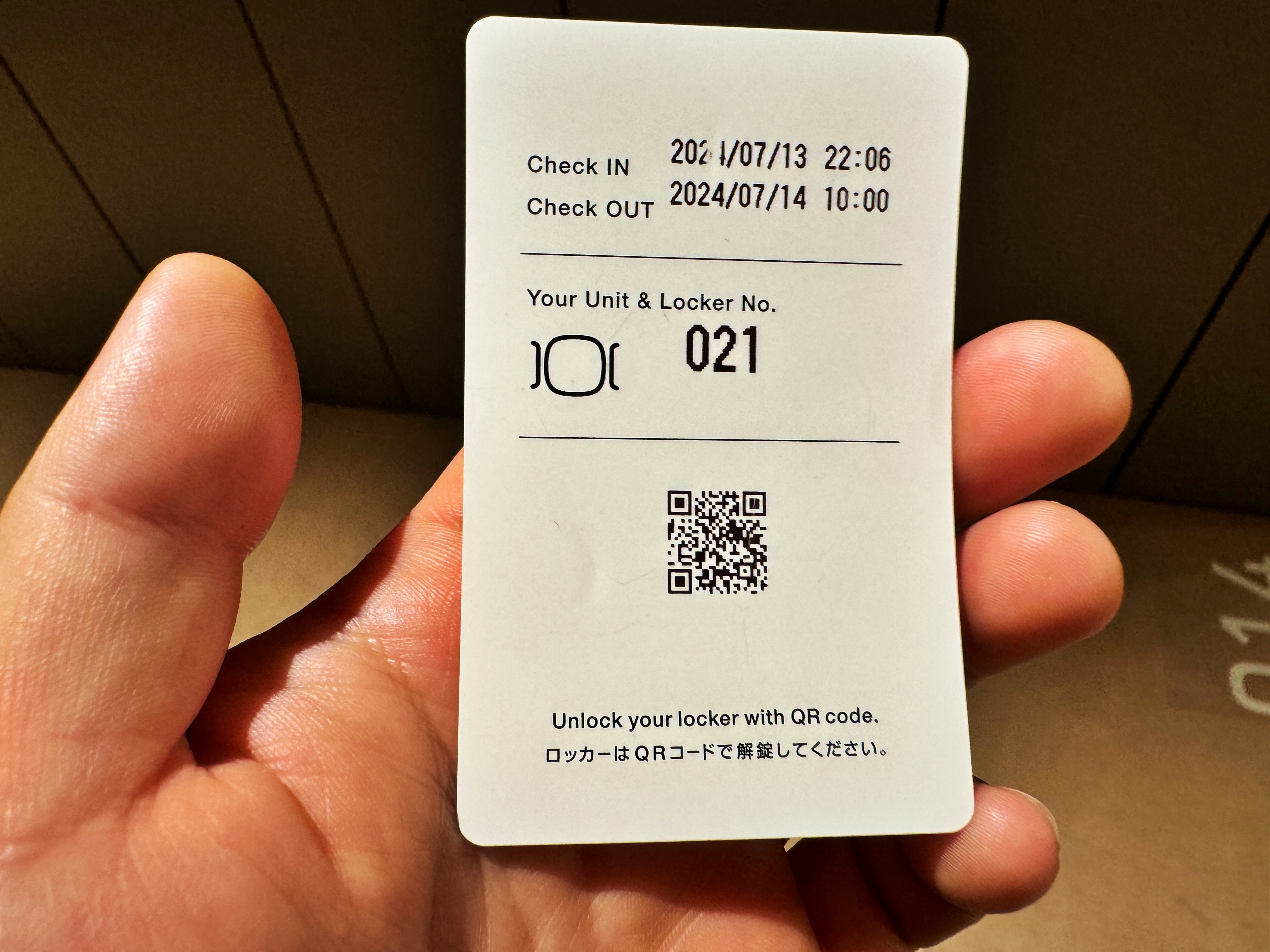체크인 및 체크아웃 날짜와 함께 제가 사용하게 될 캡슐과 락커의 번호가 적혀있습니다.