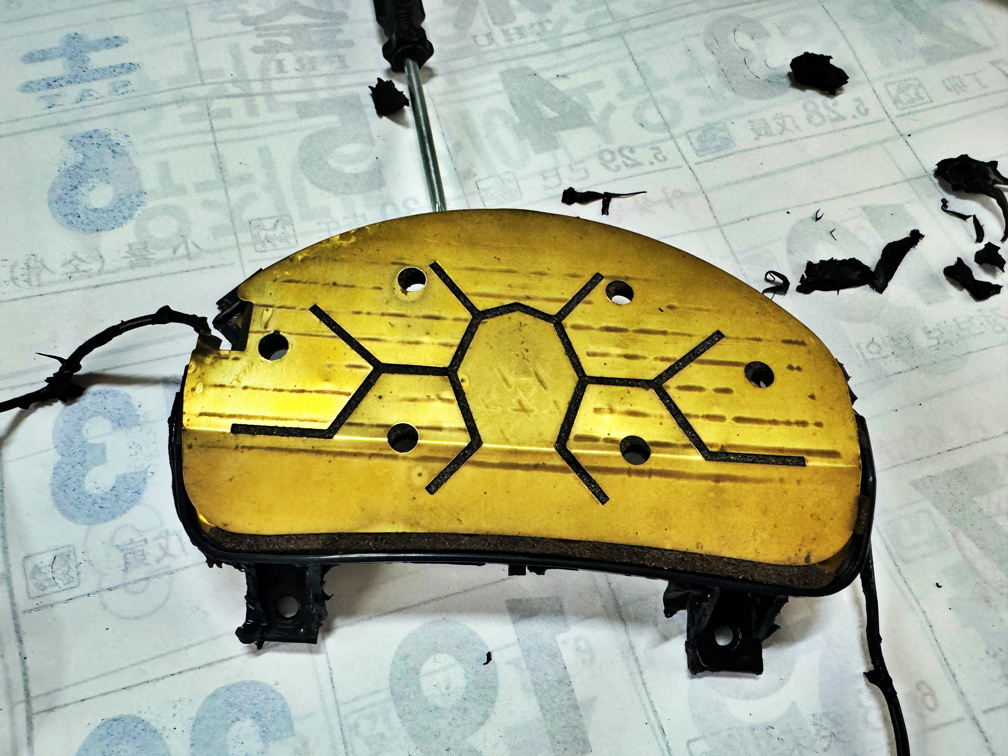 동판과 동판 사이 스펀지가 붙어있어 평소에는 떨어져 있지만 경적을 누르면 동판의 튀어나온 부분이 닿아 전류가 흐르는 방식이더군요. 스펀지가 완전히 삭아있지는 않았습니다.