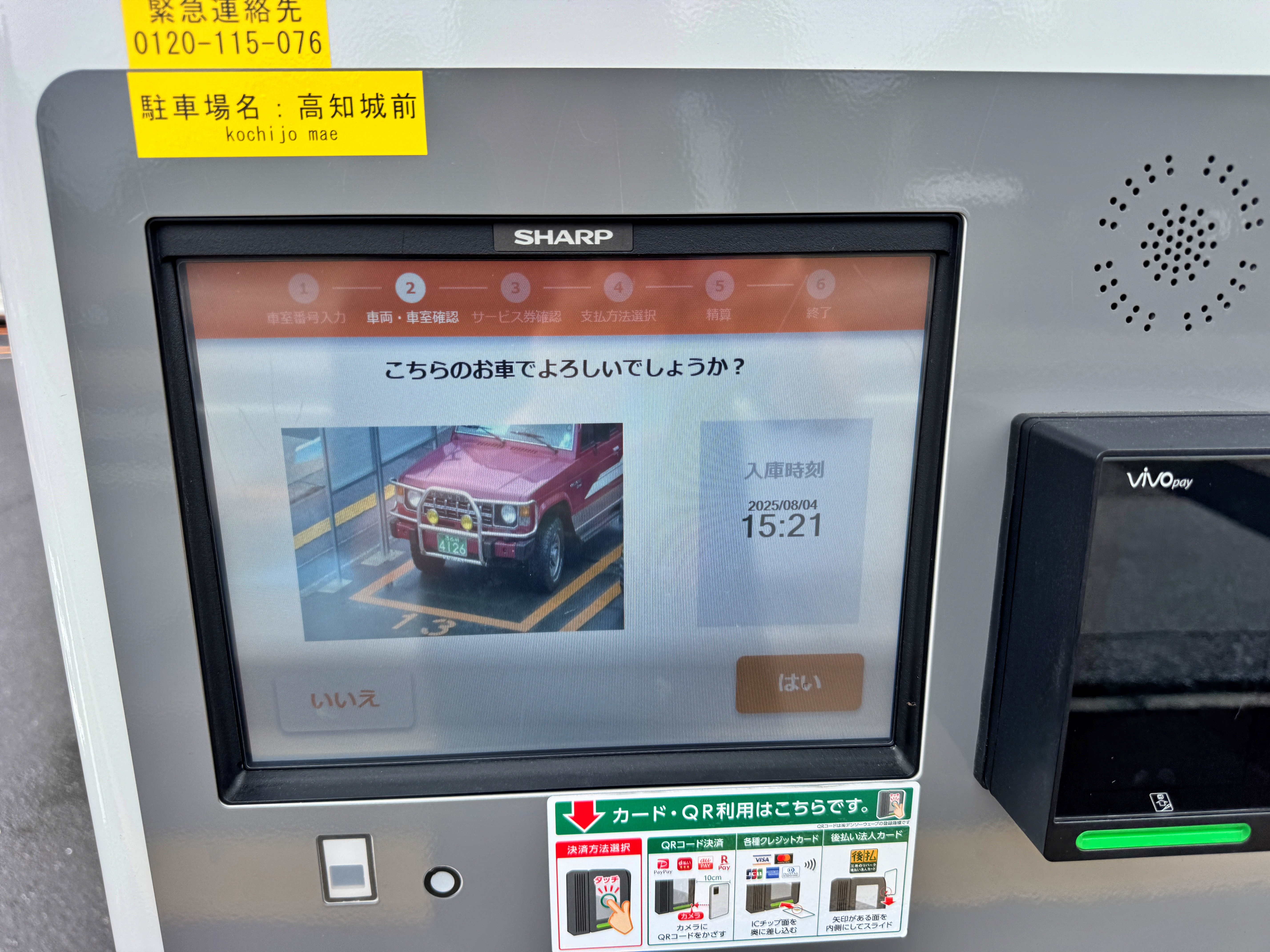 주차비를 정산할 차량이 이 차가 맞는지 카메라로 촬영된 이미지도 보여주네요. 맞으니 결제하고 나왔습니다. 다시 배를 타고 들어왔던 미사키항까지 가려면 길이 좋지 않아 180km에 무려 3시간 10분이 소요된다고 하네요. 8시 30분에 출발하는 배인지라 미사키항 선착장에 8시까지는 도착해야 하니 서둘러야 합니다.