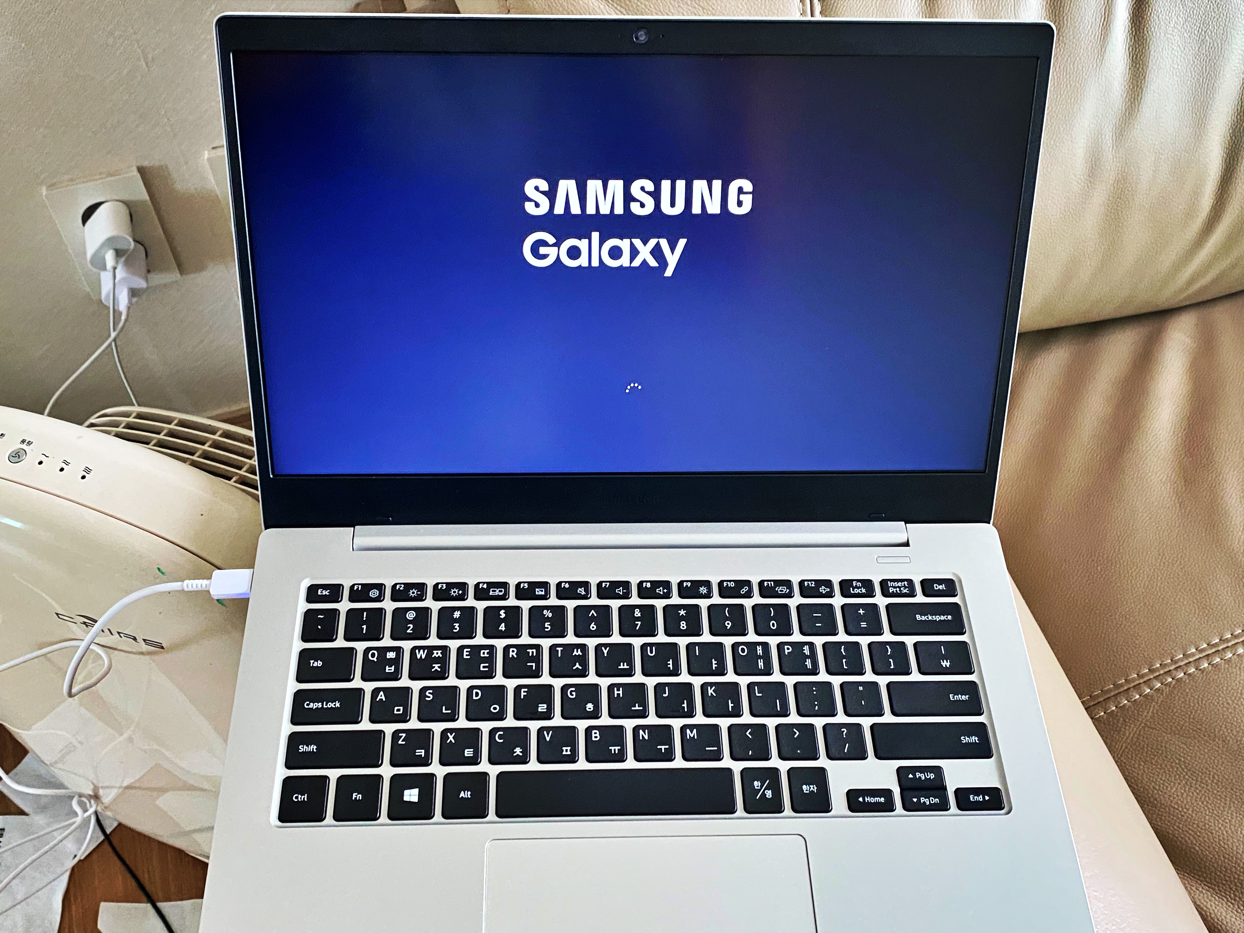생산 이후 약 3개월의 시간이 지나고 드디어 부팅되는 갤럭시 북 GO의 모습입니다.