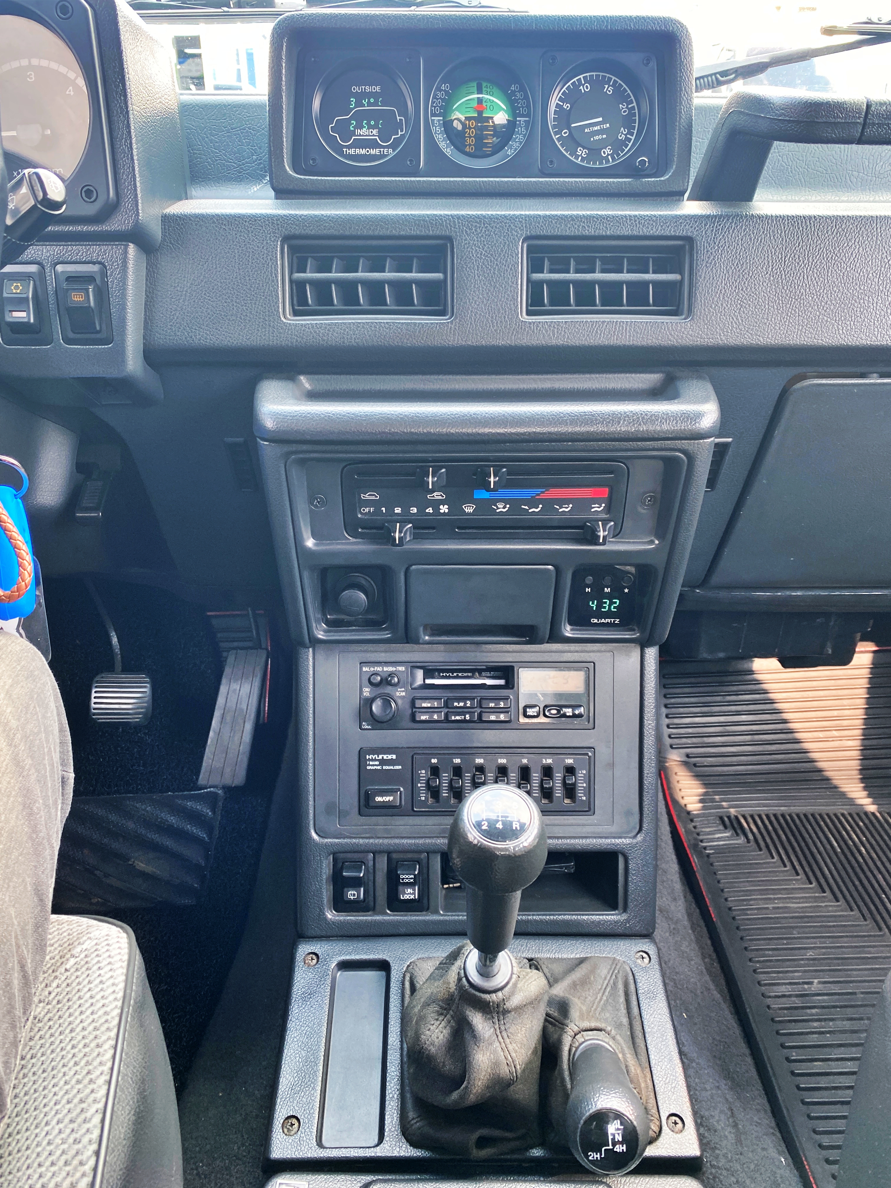 전반적인 레이아웃은 미묘한 차이를 제외하면 1세대 파제로 후기형 차량과 거의 동일합니다. 2020년 이 차를 처음 봤던 당시 약간 다른 뉴포터용 혼커버가 끼워져 있었습니다만 혼커버도 순정으로 바꿔놓았고 오디오도 연식에 맞는 순정 오디오로 바꿔놓았습니다.