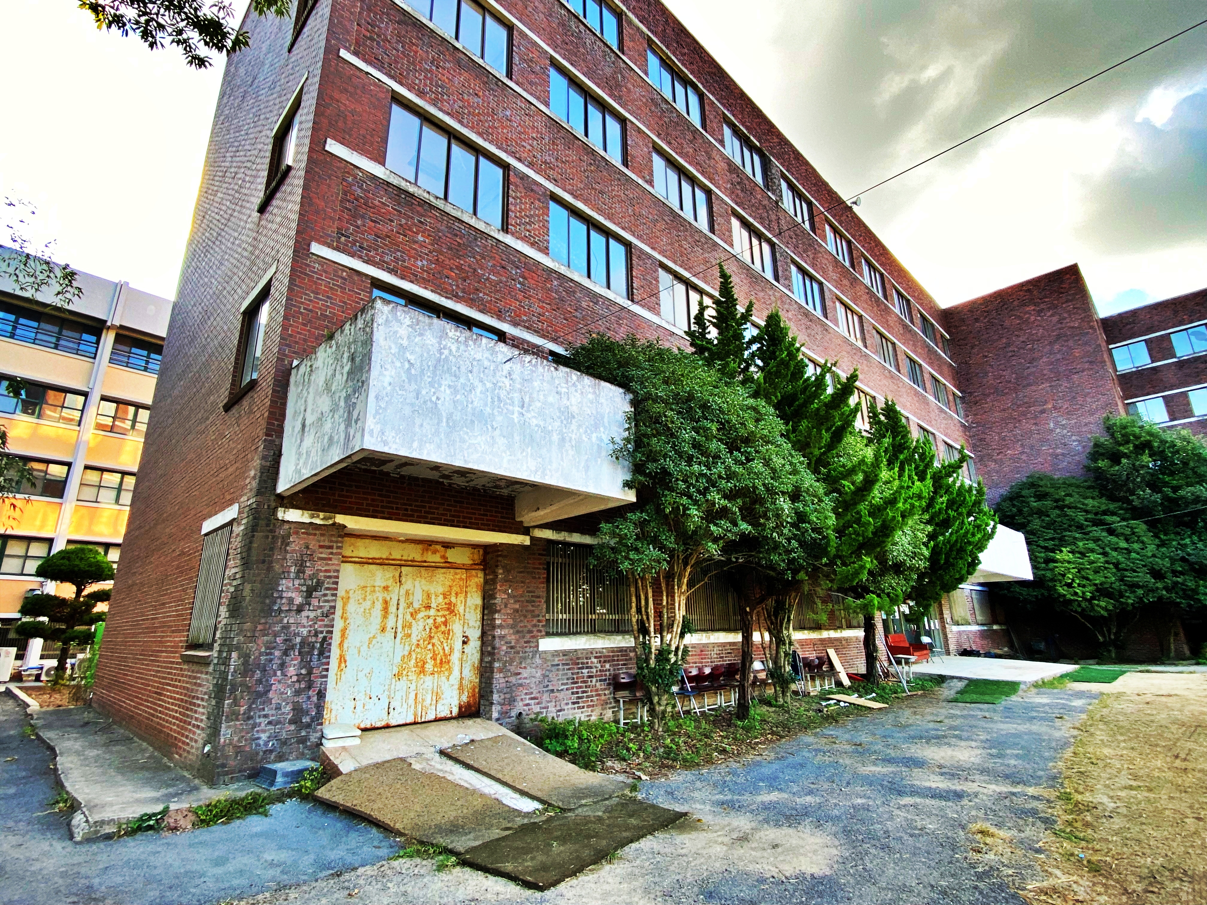 잘 보이지 않는 부분은 나무도 제멋대로 자라고 풀이 무성하게 자라있습니다. 저 앞에 보이는 건물이 이 학교에서 두번째로 지어진 지하 1층, 지상 8층 규모의 건물. 별관입니다.