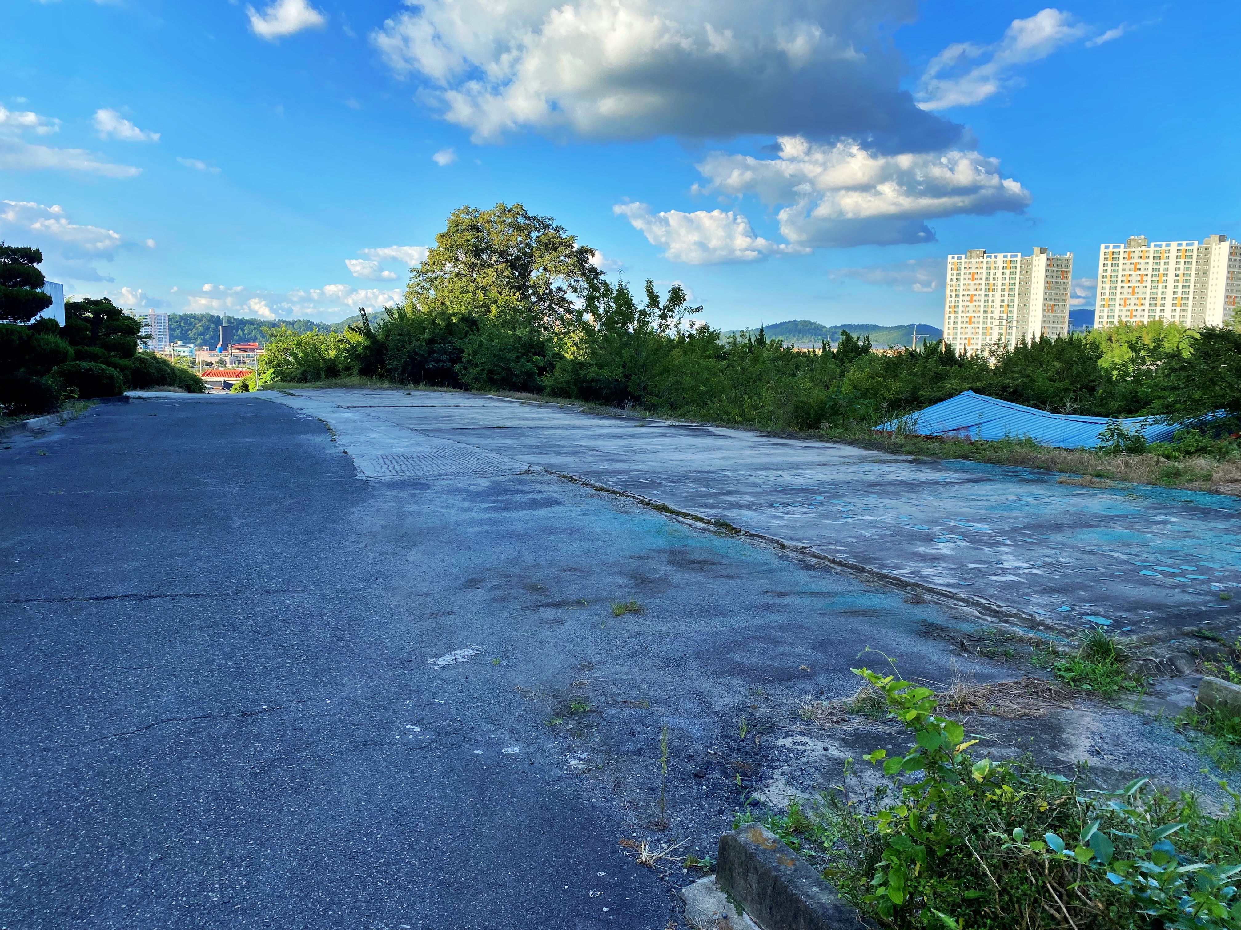 아스팔트가 포장된 공간보다 조금 높습니다. 아마 본래 용도가 주차장은 아녔으리라 생각됩니다. 학교가 지대가 높은 편이라 남평읍 소재지가 그럭저럭 눈에 들어오네요. 저 건물 8층에 올라가서 보면 얼마나 멋진 뷰를 자랑했을지는 모르겠습니다.