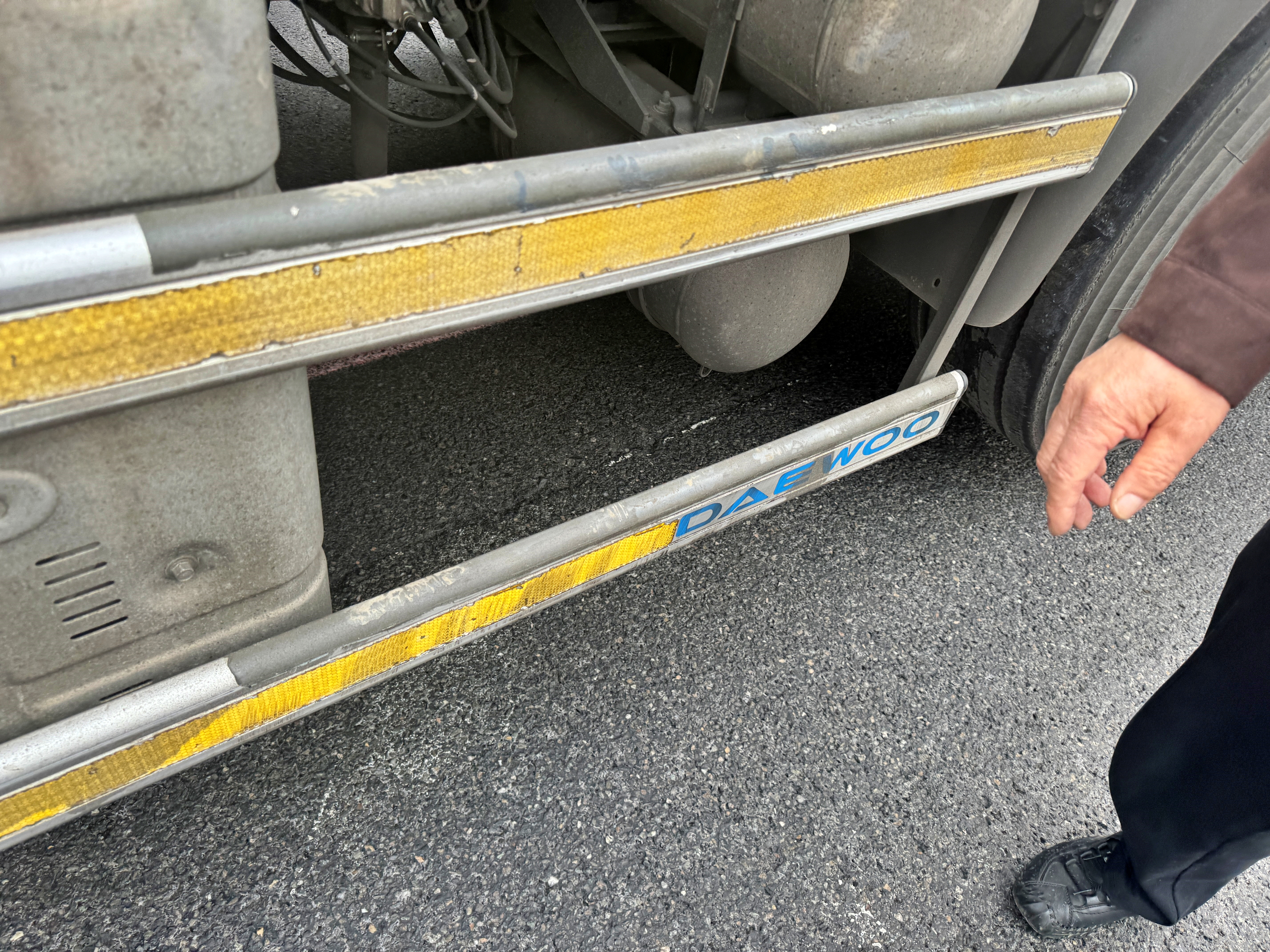 열심히 비집고 들어오셔서도 깜빡이를 끄지 않고 계속 진행하기에 저는 옆에 새로 생긴 차선으로 진입했고 진입하고 좀 가다가 싼타페가 옆도 보지 않고 그냥 2축과 3축 사이 에어탱크가 있는 난간대와 3,4,5축 타이어를 비비고 와서 섰습니다.