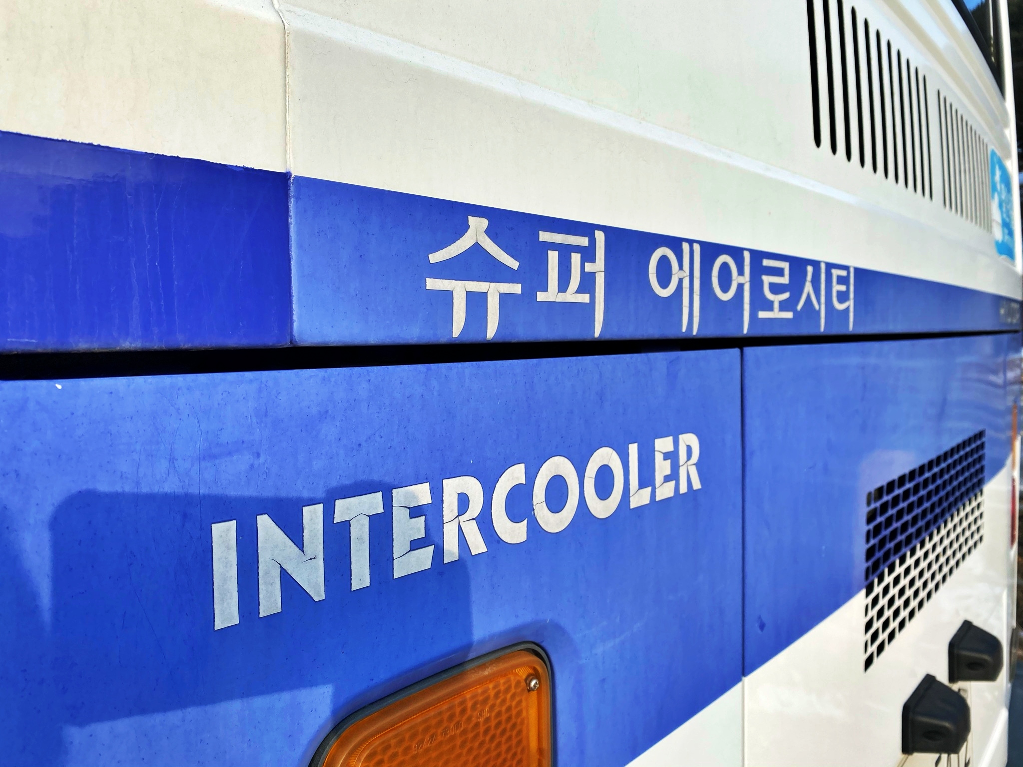 물론 초기에는 '도시형버스'같은 다른 문구가 부착되었습니다. 인터쿨러 스티커는 2006년 즈음 삭제되었지만, 완전히 다른 차량이라 생각 할 수준인 현행 모델에도 한글 스티커는 꼭 붙어 나옵니다.
