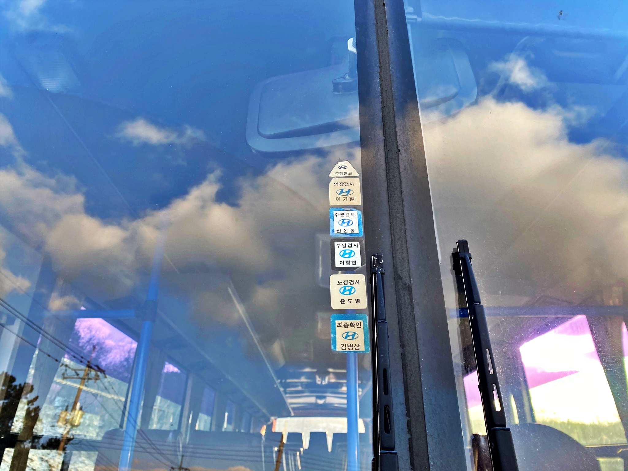 다만 아직까지도 전주공장에서 생산되는 상용차에는 이런 검사완료 스티커가 붙어있는 모습을 흔히 볼 수 있습니다. GV80 뒷유리에 붙은 스티커를 보긴 했었는데, 요즘 생산되는 승용차에도 간간히 붙어 나오는 모양입니다.