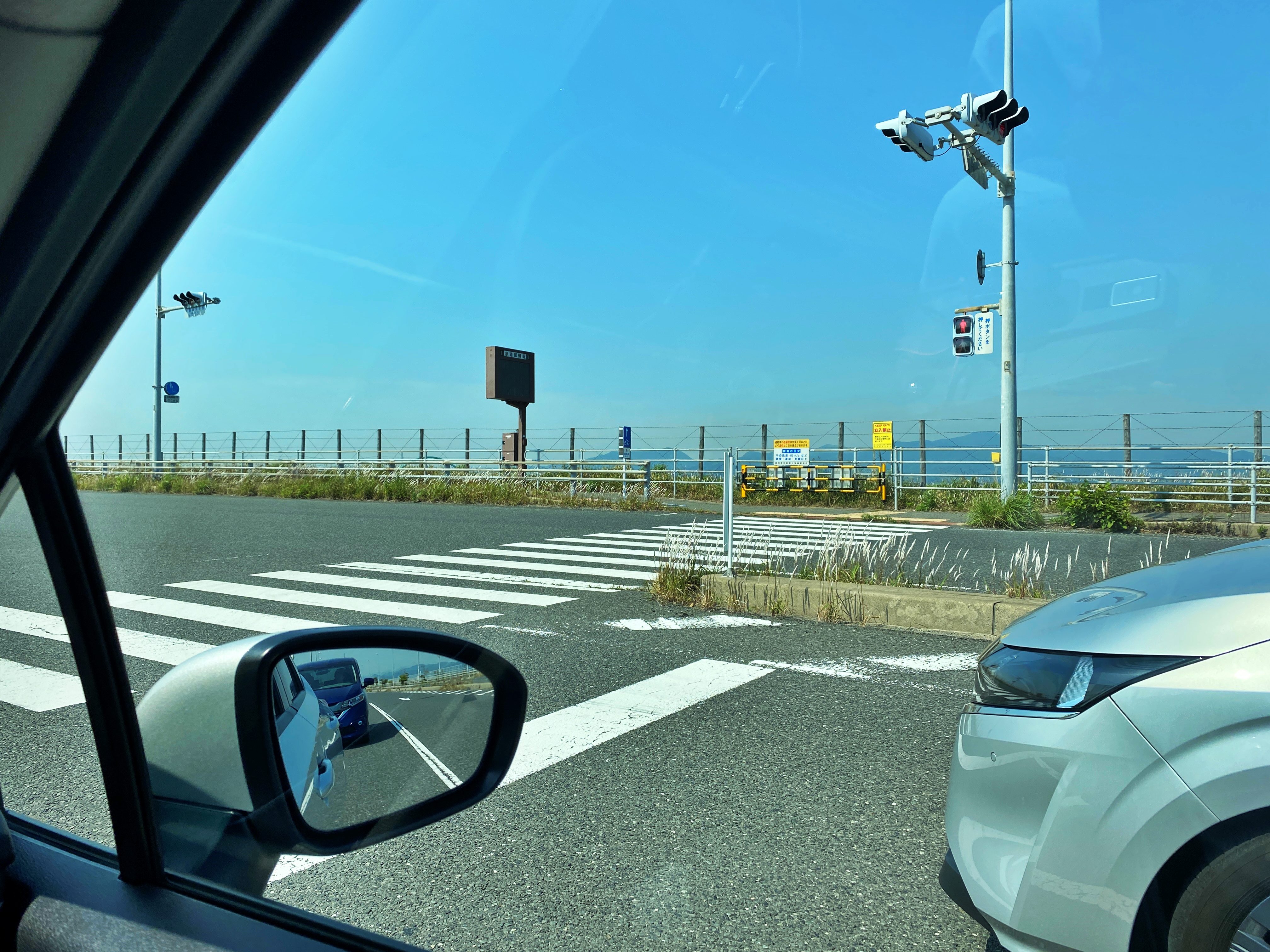 바로 옆 은색 노트도 한국인 관광객이 타고 나온 차량입니다. 기타큐슈 공항은 아까 저 위에서 봤듯이 바다 한복판에 소재하여 공단을 지나 본격적으로 사람이 보일만한 구역까지 나오는데 7km정도 소요됩니다. 생각보다 멀지요. 그럼에도 인천공항처럼 공항 진입로의 통행료를 징수하지는 않습니다.
