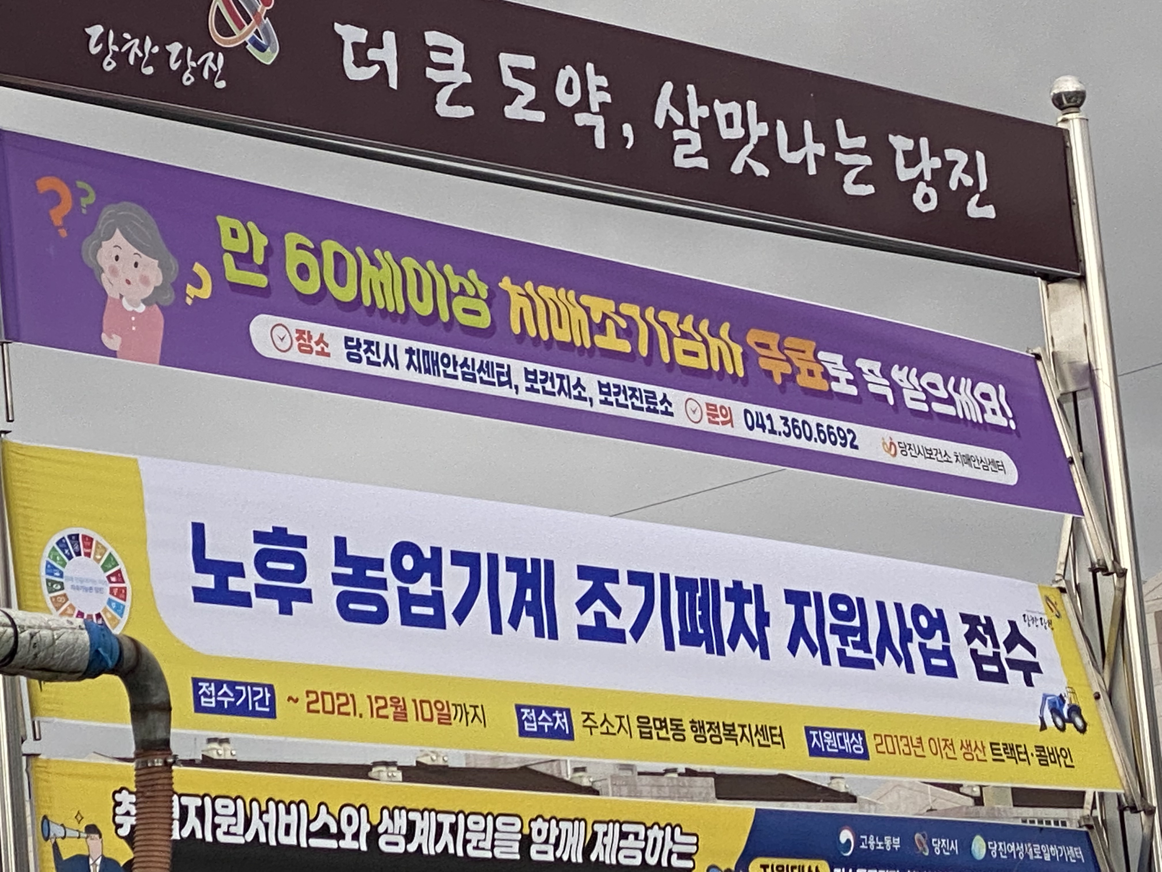 며칠 전 당진 석문면사무소 앞 식당에서 밥을 먹고 나오는데 이런 현수막이 걸려있었습니다.