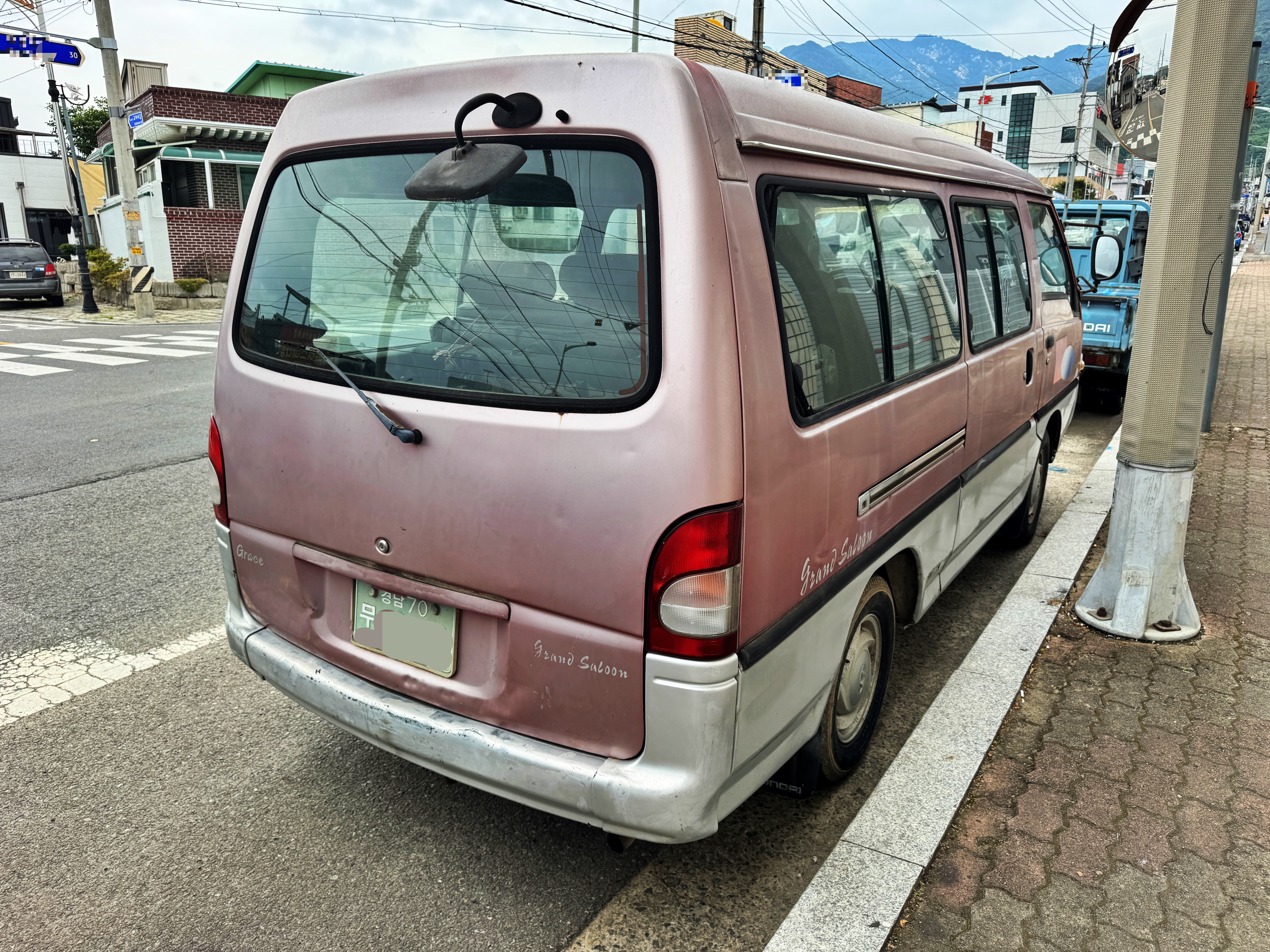 그레이스의 최고급 사양인 그랜드 살롱입니다. 이미 전면부의 안개등으로 눈치 채신 분들도 계시겠지만, 투톤 컬러 바디에 안개등과 알루미늄 휠이 최고사양인 그랜드살롱만이 가질 수 있는 익스테리어 요소였습니다. 스타렉스의 출시 이전까지만 하더라도 봉고차라 불리는 이런 원박스형 승합차들이 지금의 미니밴과 비슷한 역할을 했었기에 당시 레저용으로 이런 승합차를 출고하는 사람들이 주로 최고사양을 택했었지요.