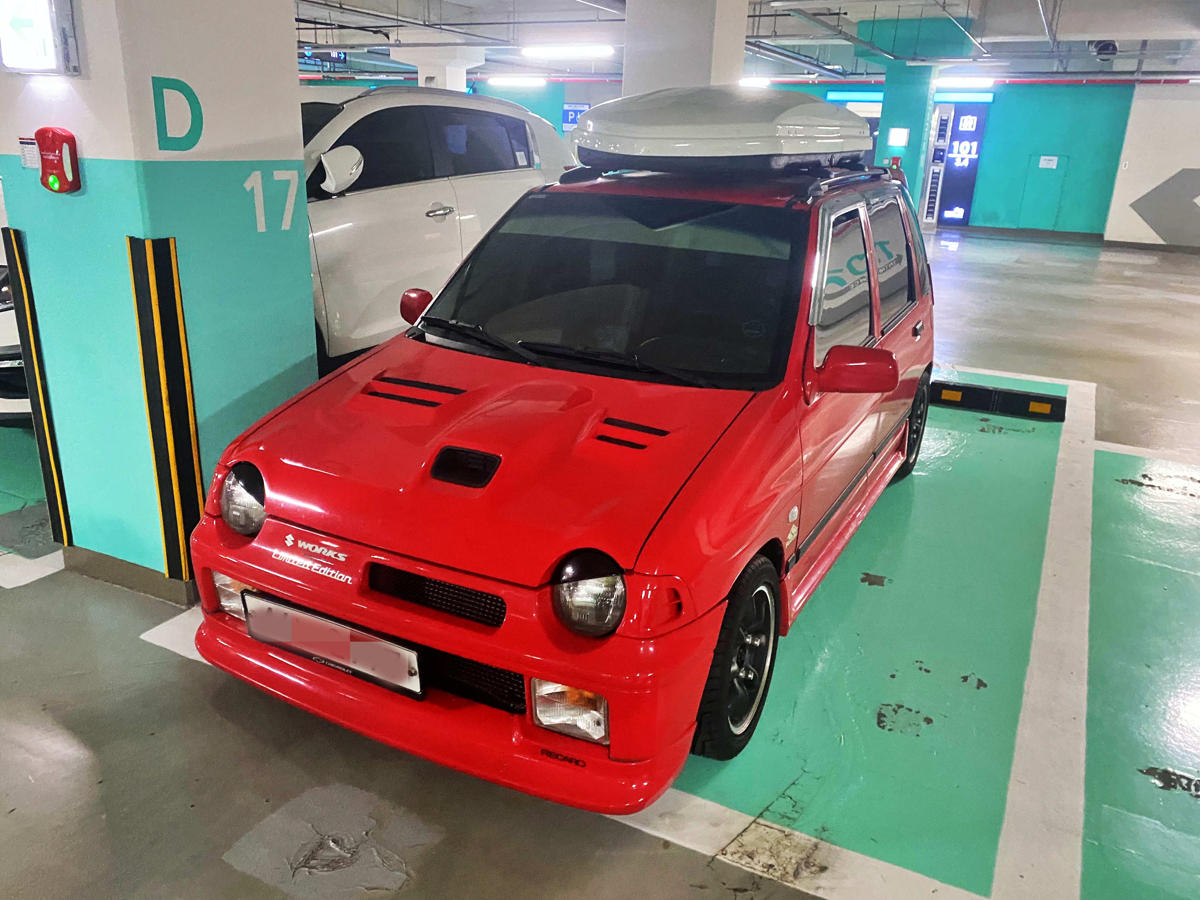 사실 알토 웍스는 3도어 모델만 생산되었지만 사이드 바디킷과 범퍼. 그리고 스포일러까지 달려있으니 인상이 달라져 티코지만 티코처럼 보이지 않지요. 한때 공동구매까지 했었던 중국산 클리어타입 테일램프도 잘 부착되어 있습니다. 차에 대해 잘 모르는 사람이 보면 진짜 알토라고 생각하고 속을법한 비주얼입니다.