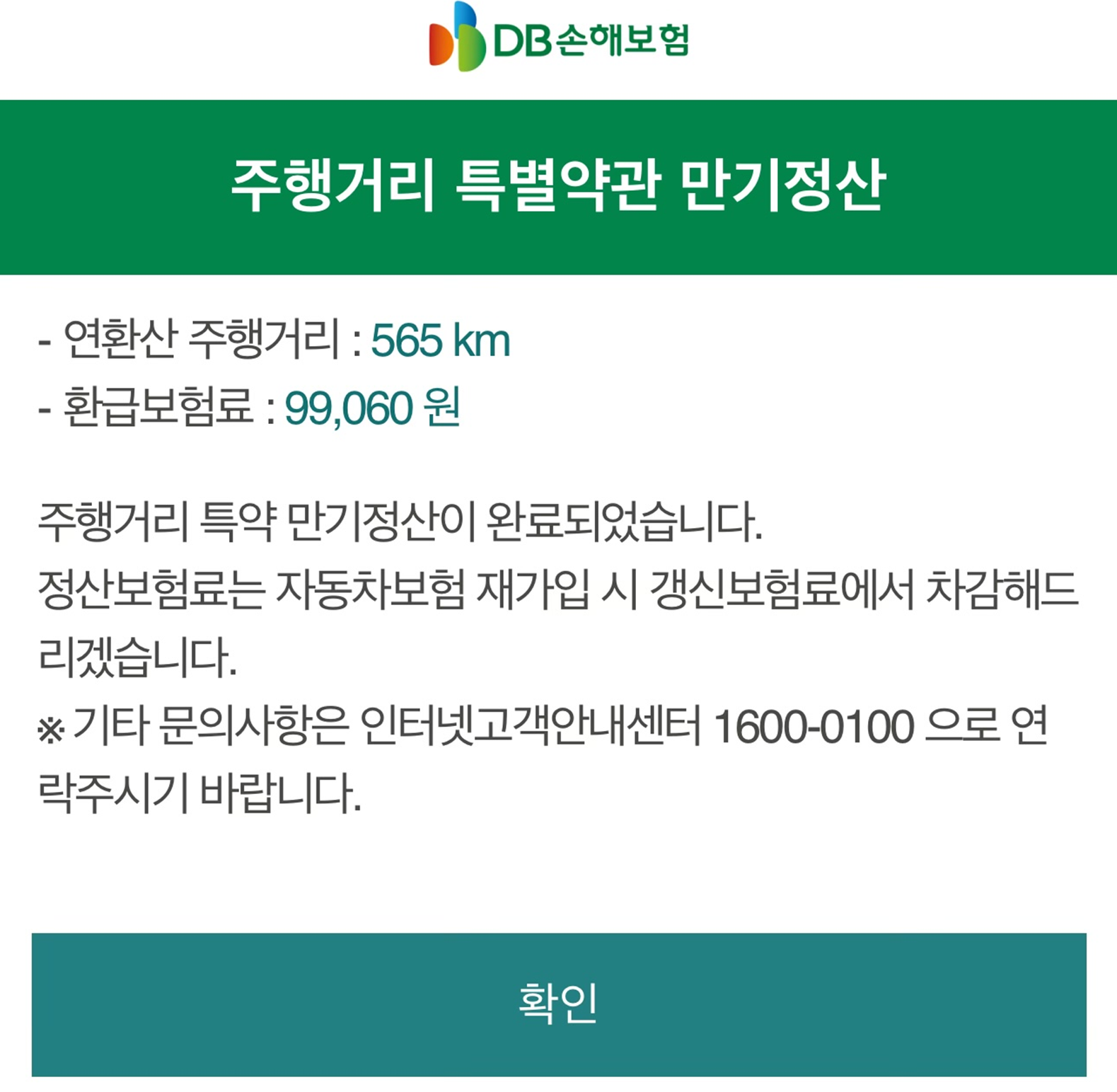 최대치를 환급받았습니다만, 보험료가 비싸지 않아 환급보험료도 10만원에 조금 미치지 않네요. 바로 차감된 금액으로 결제를 마쳤습니다. 엔진오일을 교체하러 가려 했더니만 뭐 저거밖에 타지 않았으면 좀 더 타도 되겠습니다. 아니 그냥 좀 더 타던지 해야겠습니다.