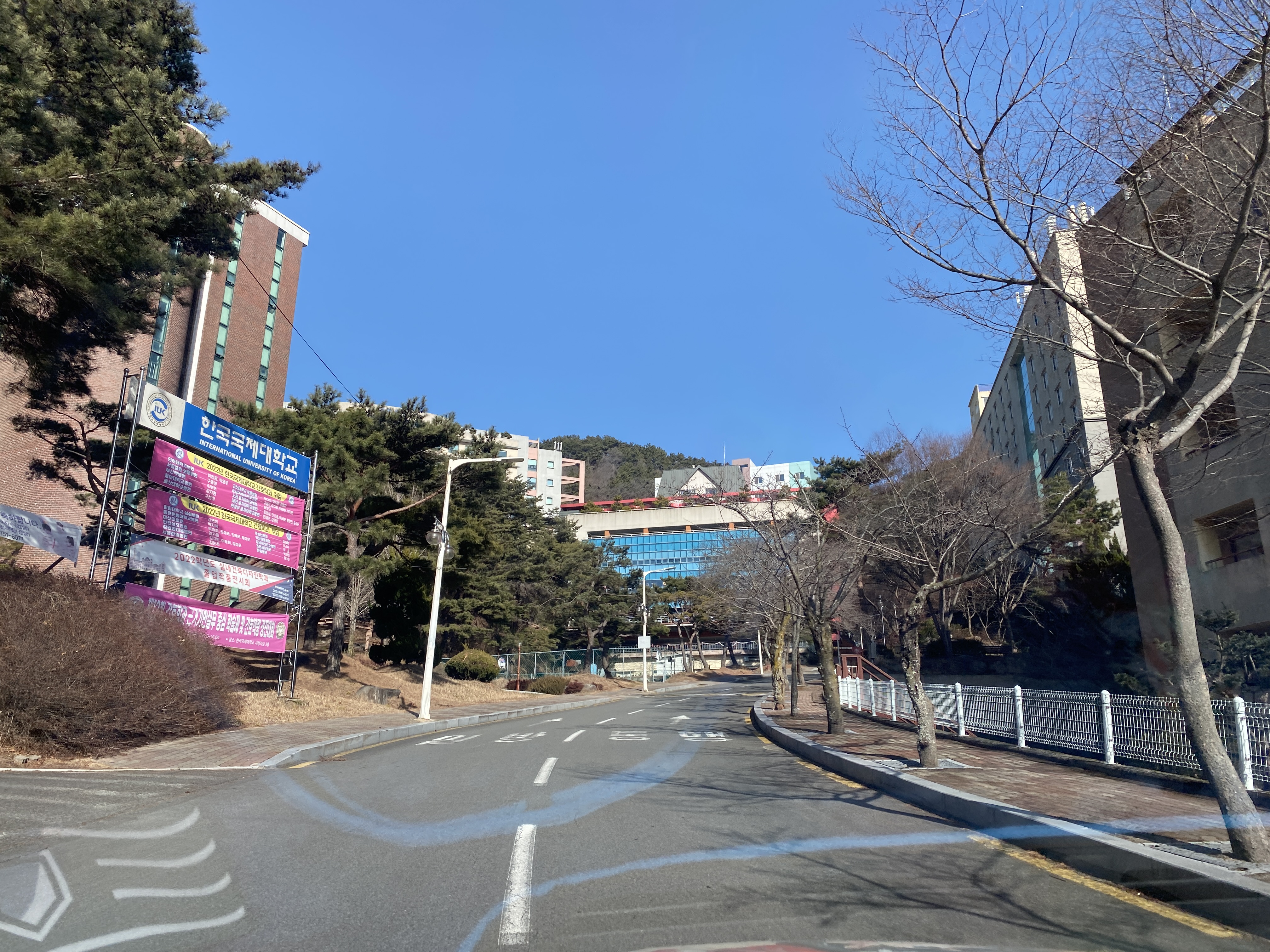 그저 그런 시골 풍경이 이어지던 중 한국국제대학교의 교문이 보입니다.