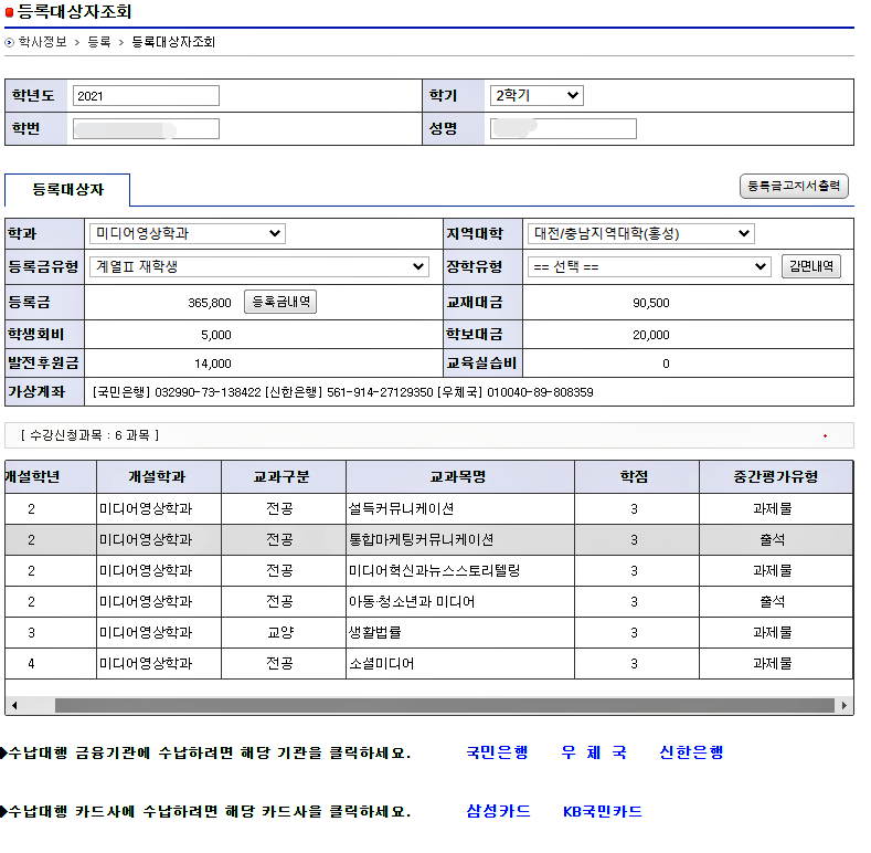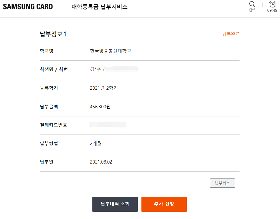 삼성카드피셜 인서울 국립대학인 한국방송통신대학교의 등록금을 납부했습니다.