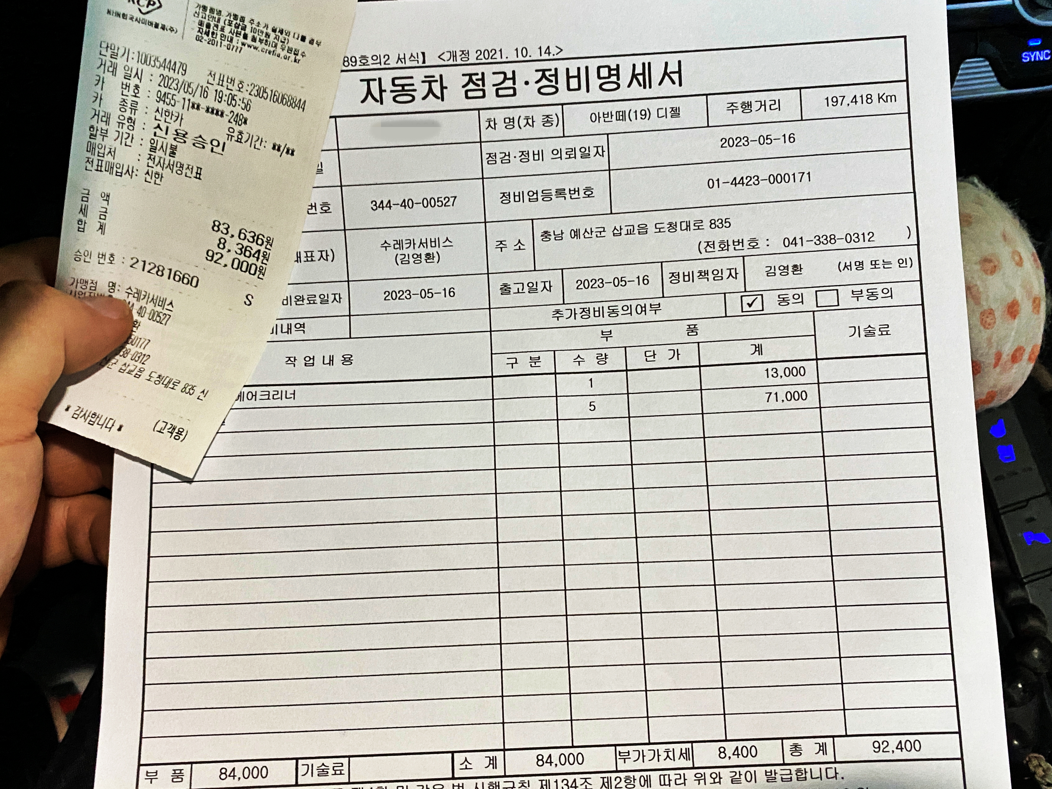 2019.05.28 - [티스도리의 자동차이야기] - 더뉴아반떼 디젤 엔진오일 교환 + 현대블루핸즈 홍성오관점