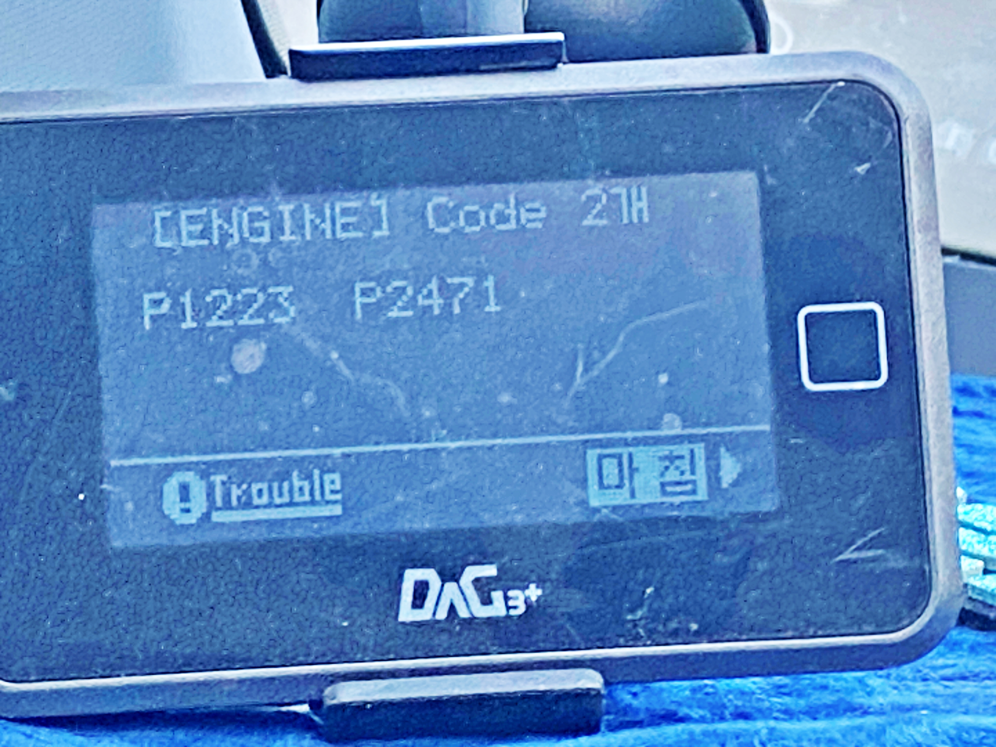 네. 1223은 오일펌프 관련 코드고 2471은 DPF 관련 코드입니다. 아직 퇴근하시지 않았는지 여쭙고 집에 가는 길목의 수레카서비스에 차량을 입고합니다.