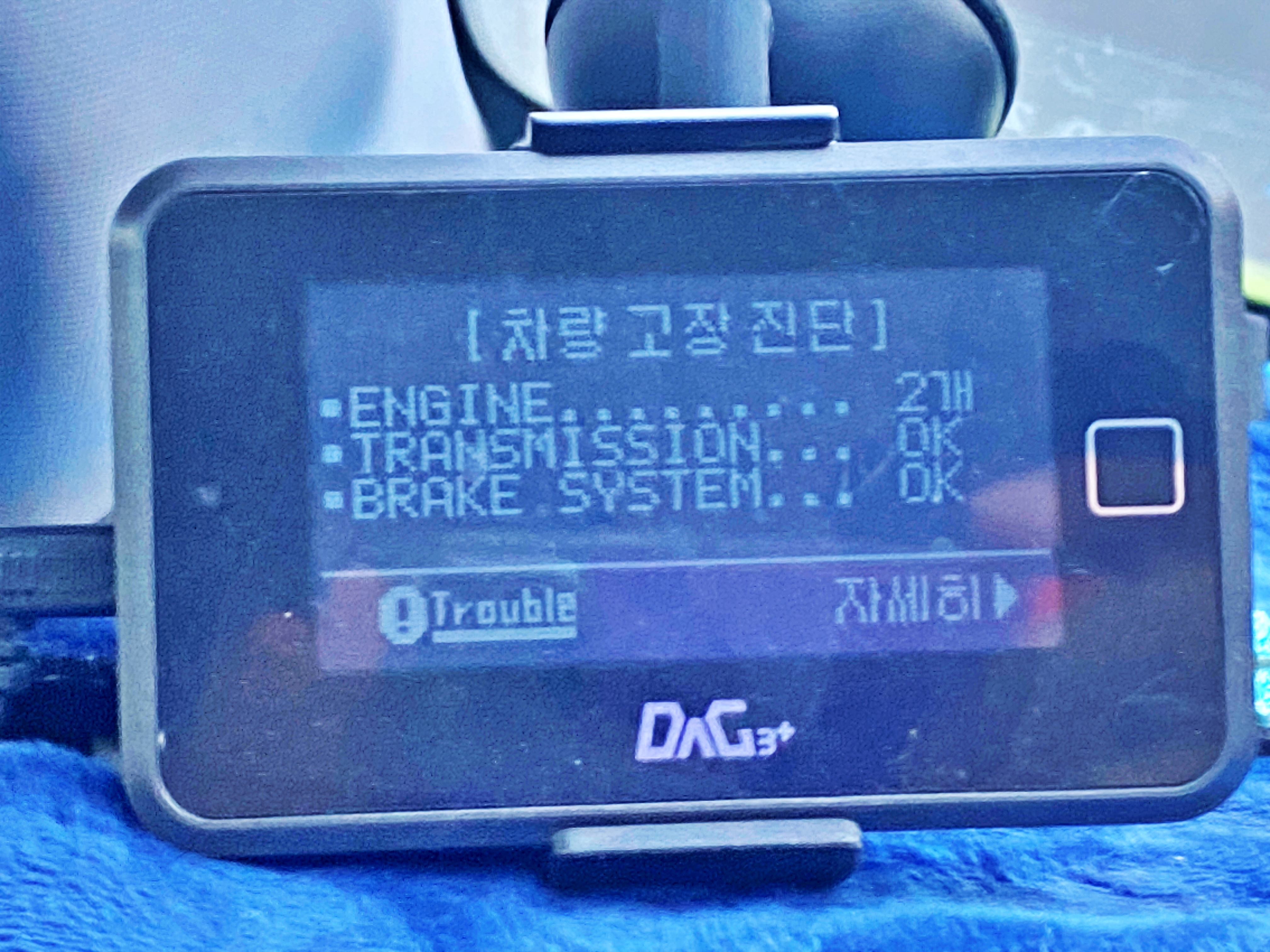 엔진 쪽 고장코드가 2개 뜨네요. 자세히 확인하기로 합니다.