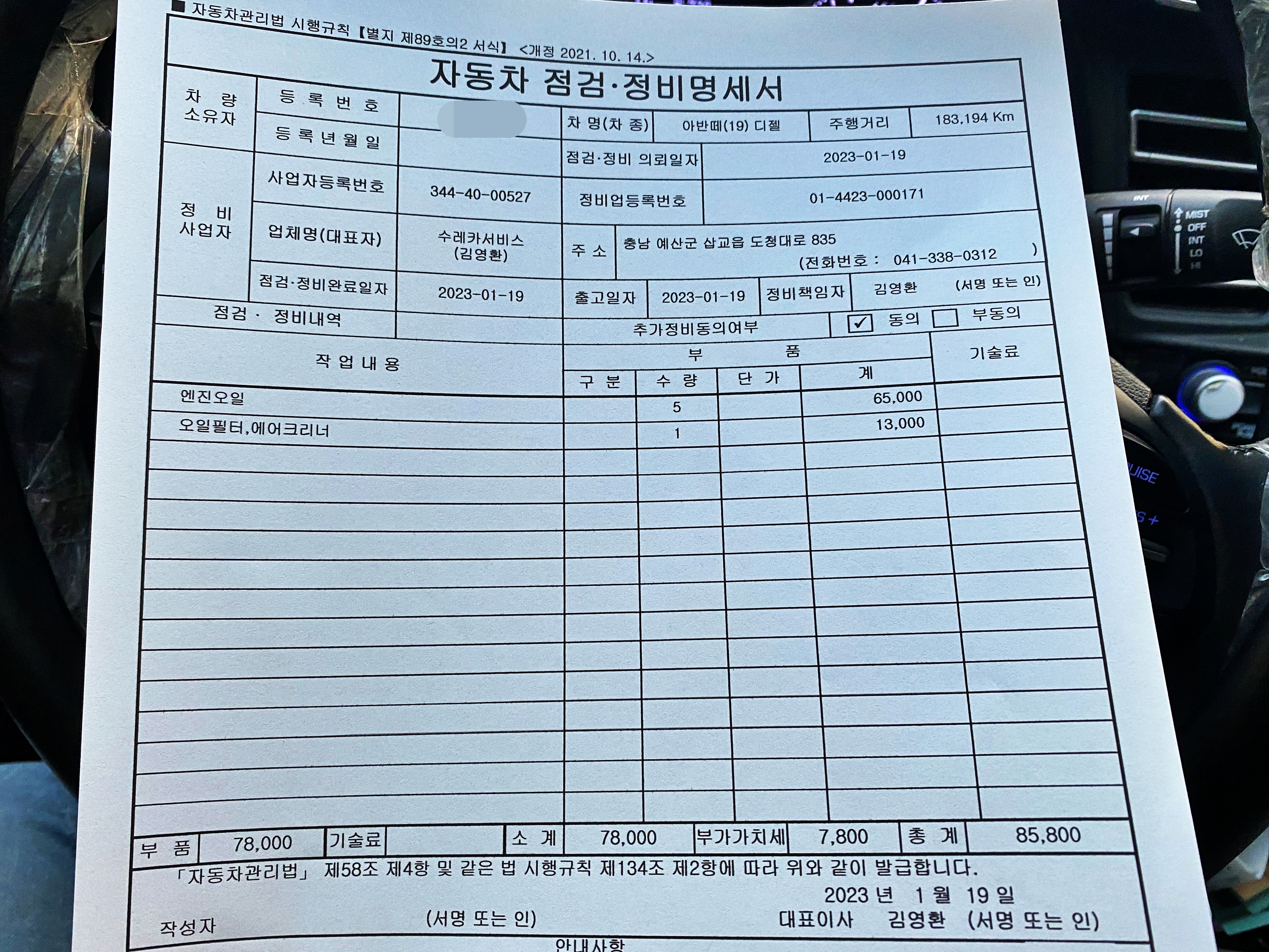 2023.01.21 - [티스도리의 자동차이야기] - 230119 더 뉴 아반떼 디젤 엔진오일 교체