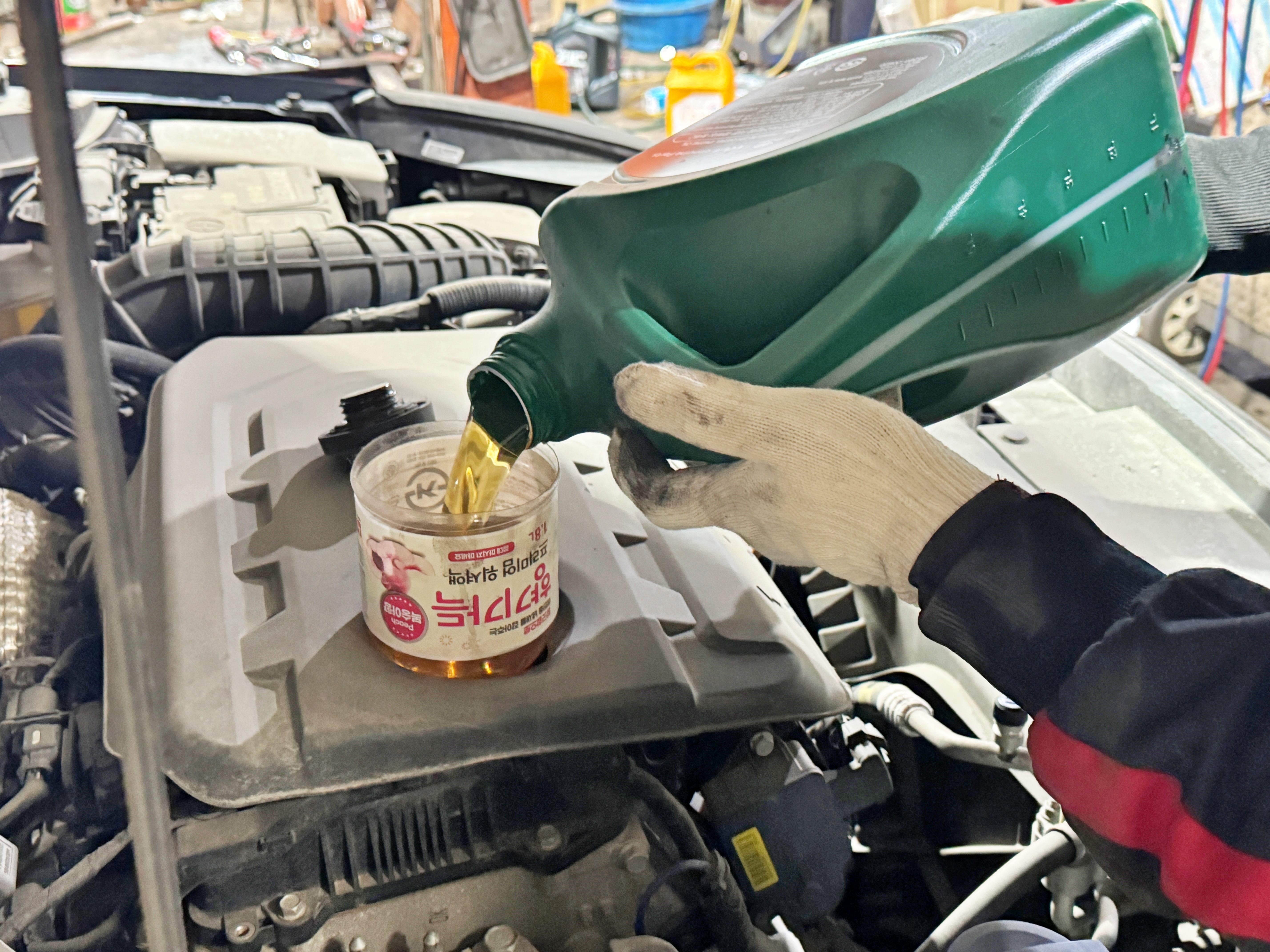 엔진오일을 교체하지 않은지 꽤 오래됐다며 오일을 갈고 준다고 했었는데 시간이 여의치 않아 결국 제가 교체하게 되었습니다. 대신 2만 원 정도 들어있는 선불 하이패스 카드와 차에 있던 몇천 원 정도 되는 동전을 다 가지라고 하더군요.