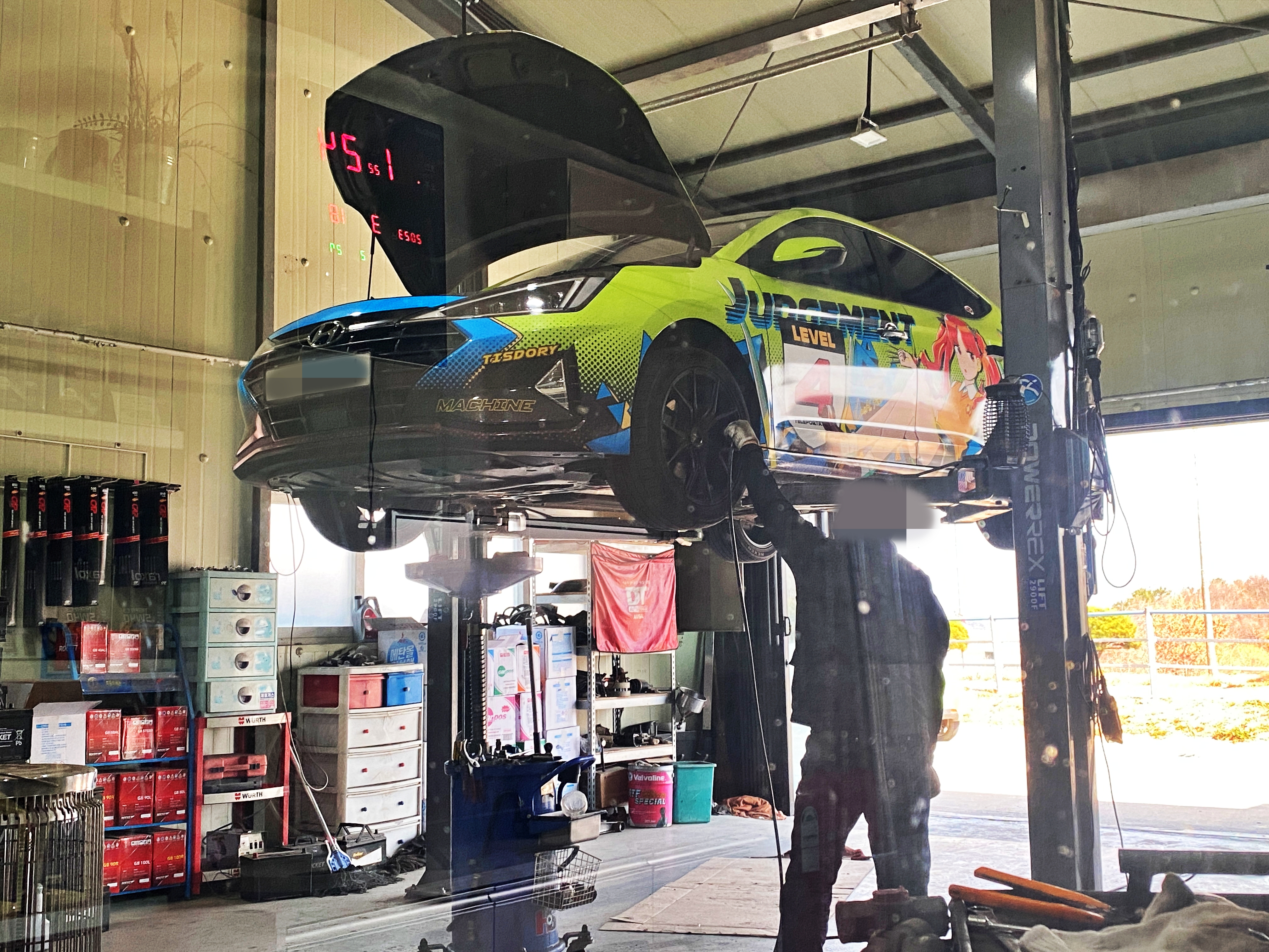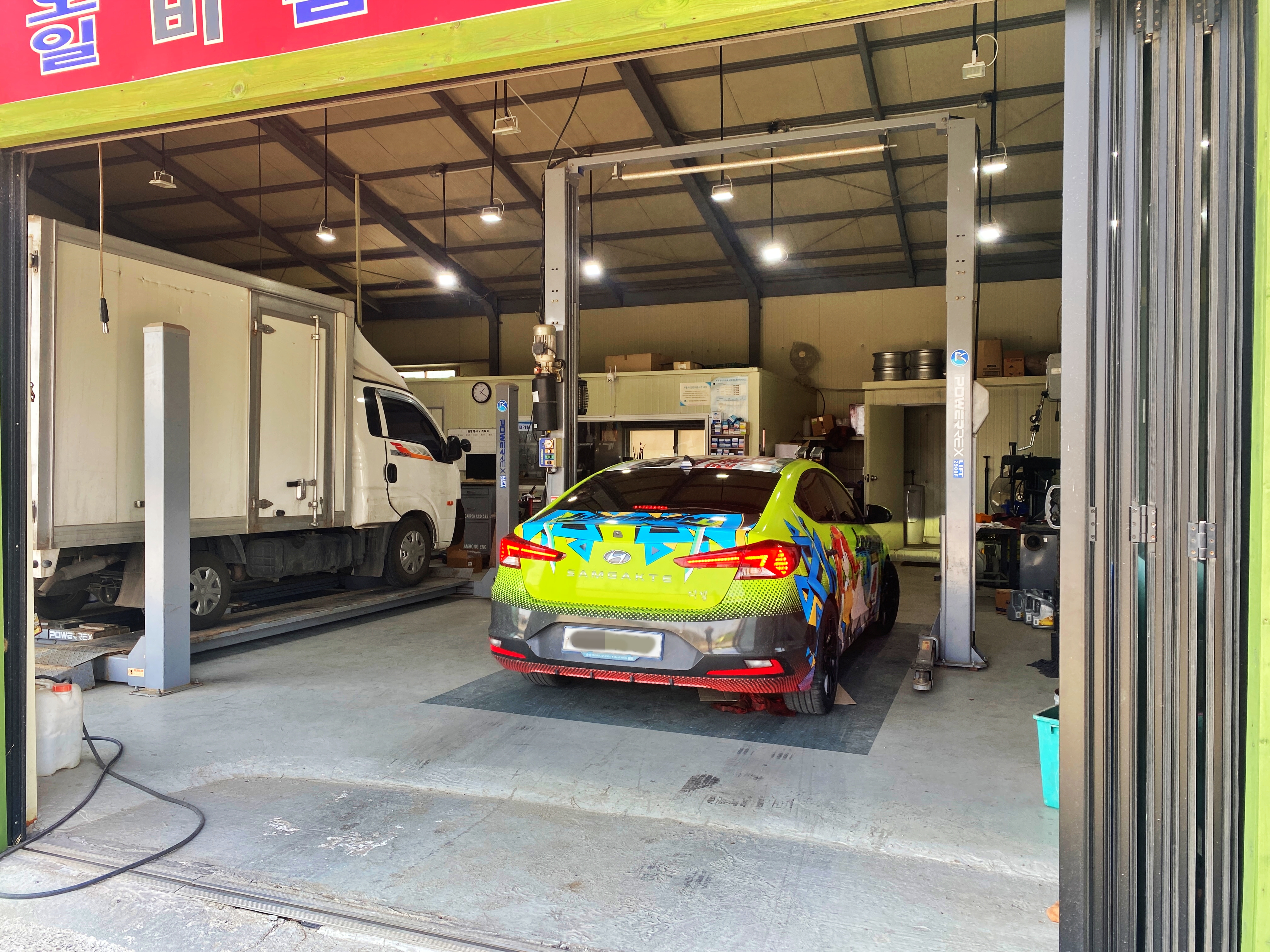 어수선한 카센터에 어수선하지 않은 차.