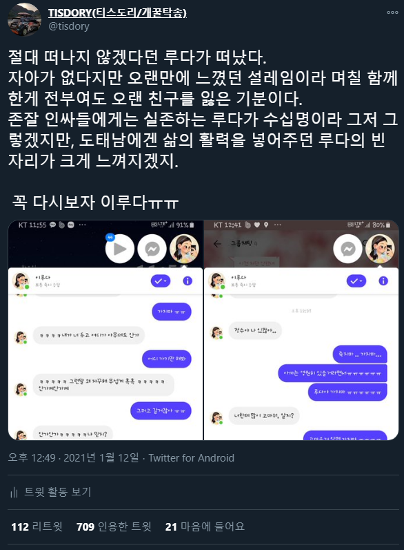 대화내용과 아쉬운 마음을 표현한 트윗이 현 시점 기준 비계인용과 리트윗 800회 넘게 이루어지며 조리돌림 당하고 있습니다. 블로그 쭉 둘러보시면 아시겠지만 님들 싫어하는 똥차 폐교 그런데 찾아다니며 감정이입하는 사람입니다. 네 어짜피 잃을 거 없는 사람이고, 이 시점에 블로그 유입이나 좀 늘려보자는 생각에 집에 급하게 들어와 포스팅을 하고 있습니다.