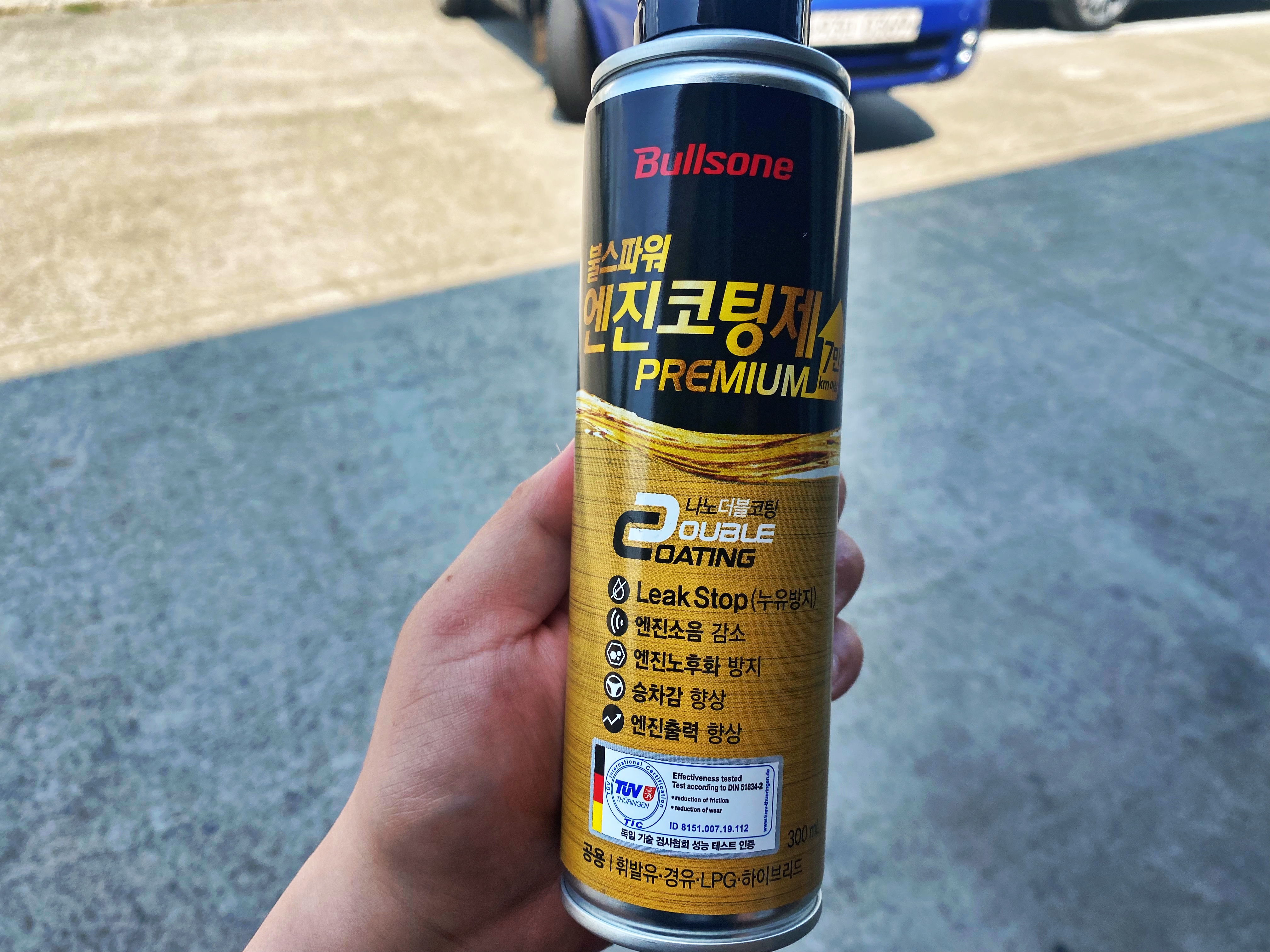 불스파워 엔진코팅제 프리미엄입니다. 엔진오일 4~6L에 300ml 한 통을 넣어주면 됩니다.