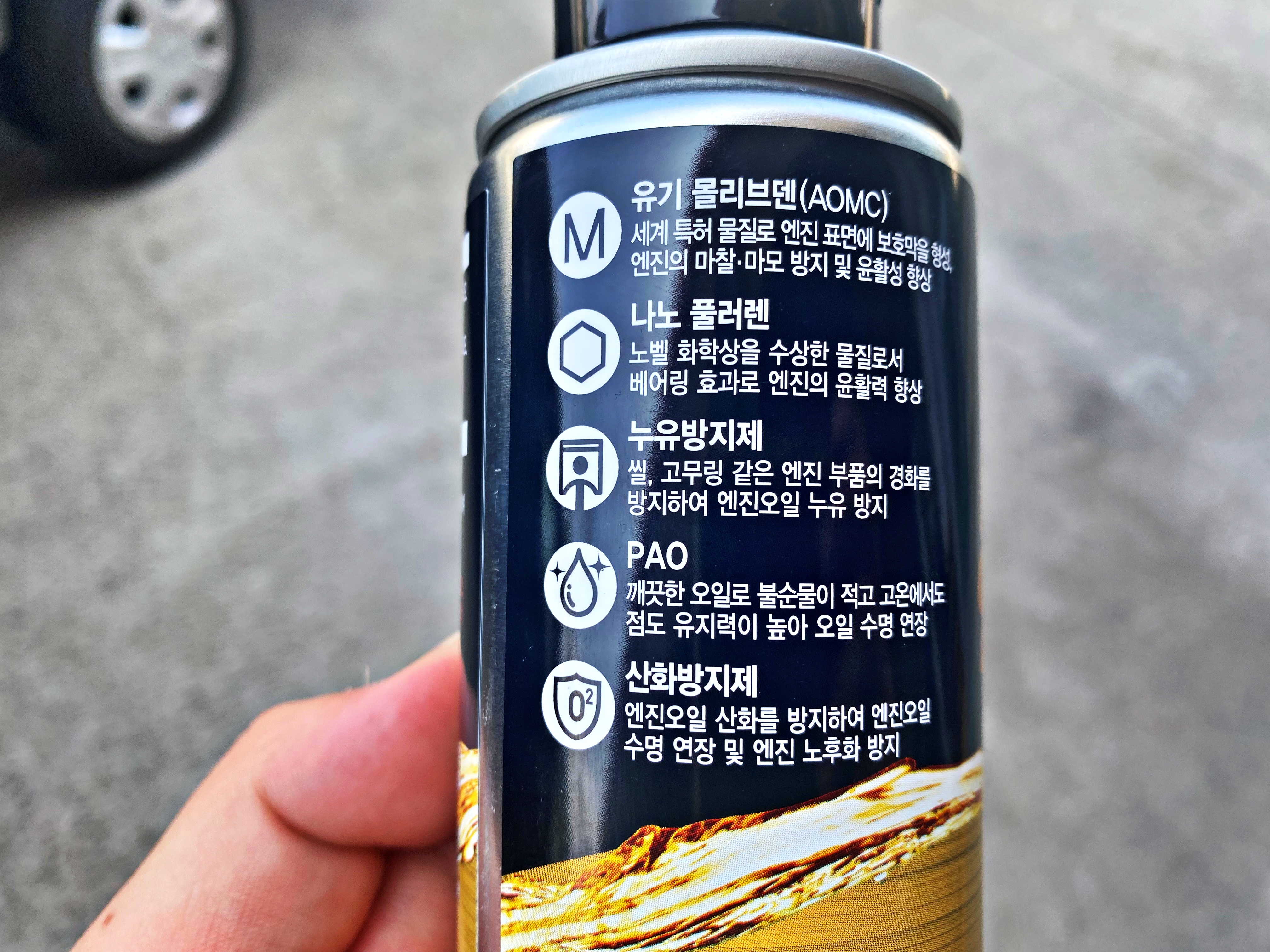 유기 몰리브덴은 스스로 코팅막을 형성하는 성분이고 나노 풀러렌은 0.88 나노미터의 작은 입자로 상처가 생긴 엔진 내벽을 채워주고 베어링 효과로 윤활성을 높여준다고 합니다. 그 외 누유 방지제나 산화방지제는 일반적인 엔진오일 첨가제에도 들어있는 성분이고 하니 익히 잘 아시리라 생각하고 넘어가기로 합시다.
