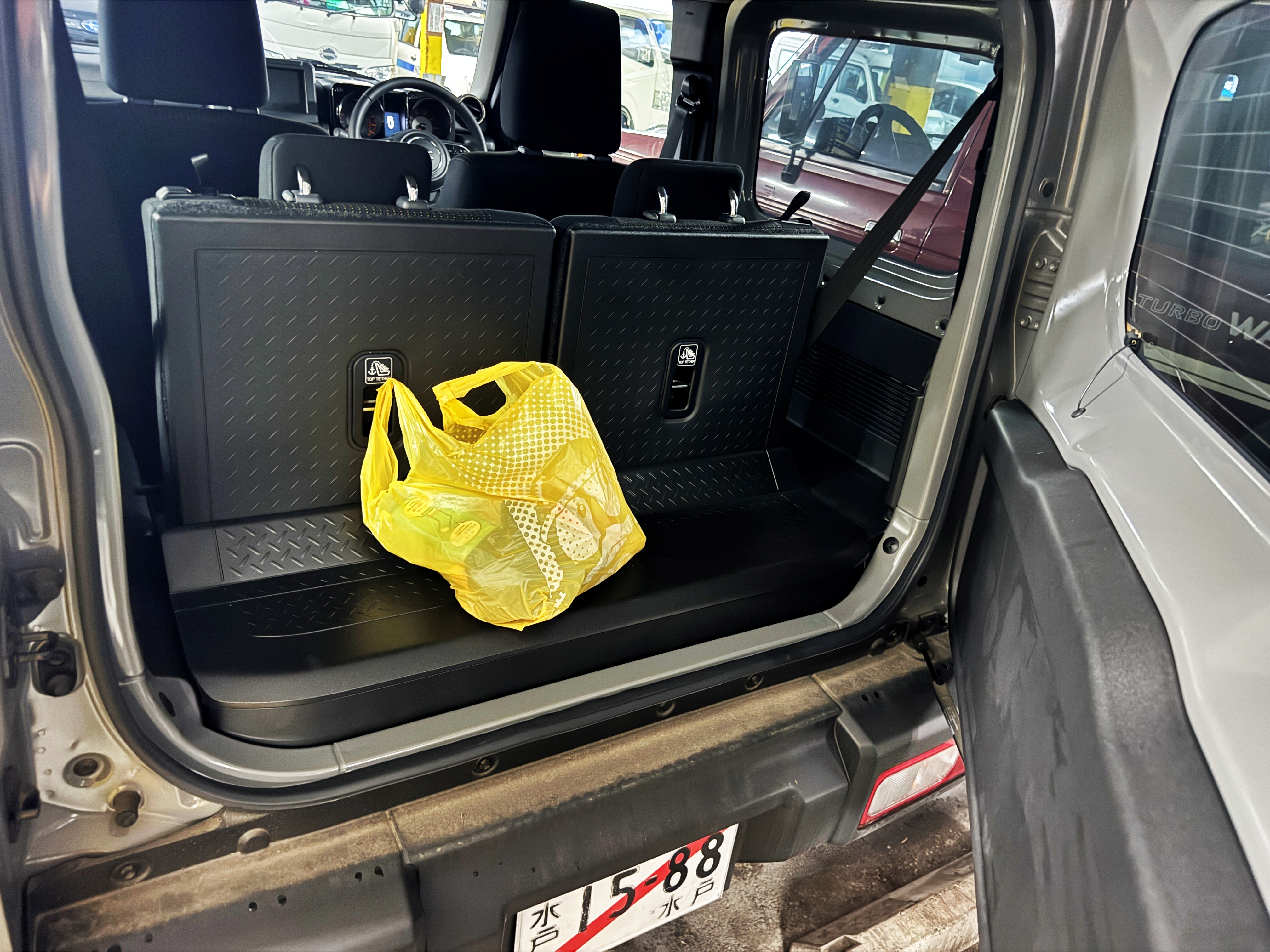 트렁크 공간도 2열 좌석을 열어놓으면 엄청 좁고요. 2열 좌석을 접어도 그리 넓지는 않았습니다. 그렇게 진귀한 임시번호판 짐니 구경을 마치고 짐니 차주분과 헤어졌습니다. 아마 지금쯤 이 짐니는 인증을 마치고 한국 번호판을 달고 한반도 어딘가에 주차되어 있겠지요. 짐니 차주분도 인턴 활동을 위해 다시 일본에 들어온다고 하셨는데, 여러모로 좋은 일만 있으셨으면 좋겠습니다.