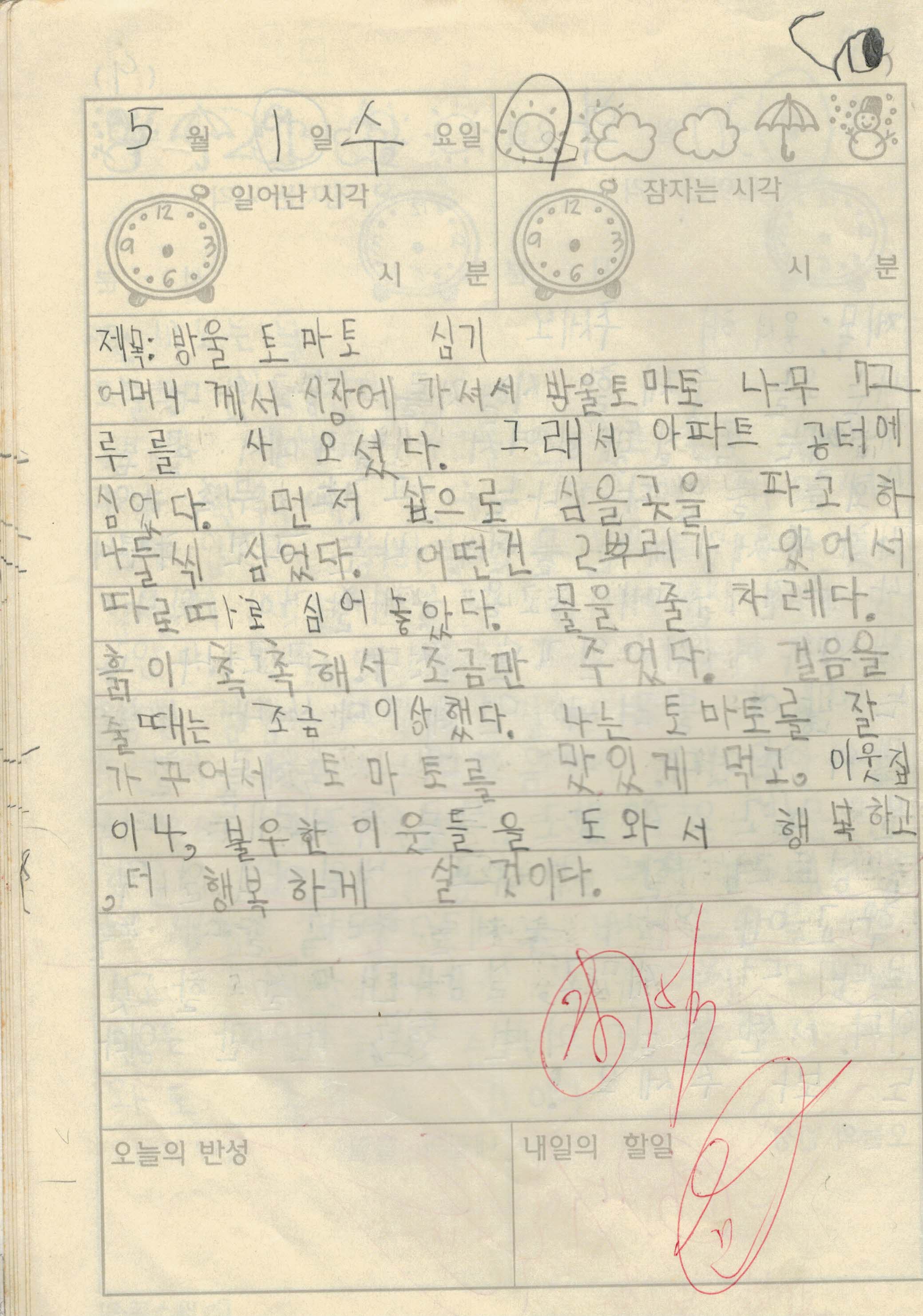 오랜만에 초딩일기를 가져왔습니다. 정확히 만 20년 전 2002년 5월 1일에 있었던 일이네요. 아마 방울토마토를 심었던 일 다음의 이야기는 초딩일기에서 이전에 다뤘던 기억이 납니다.