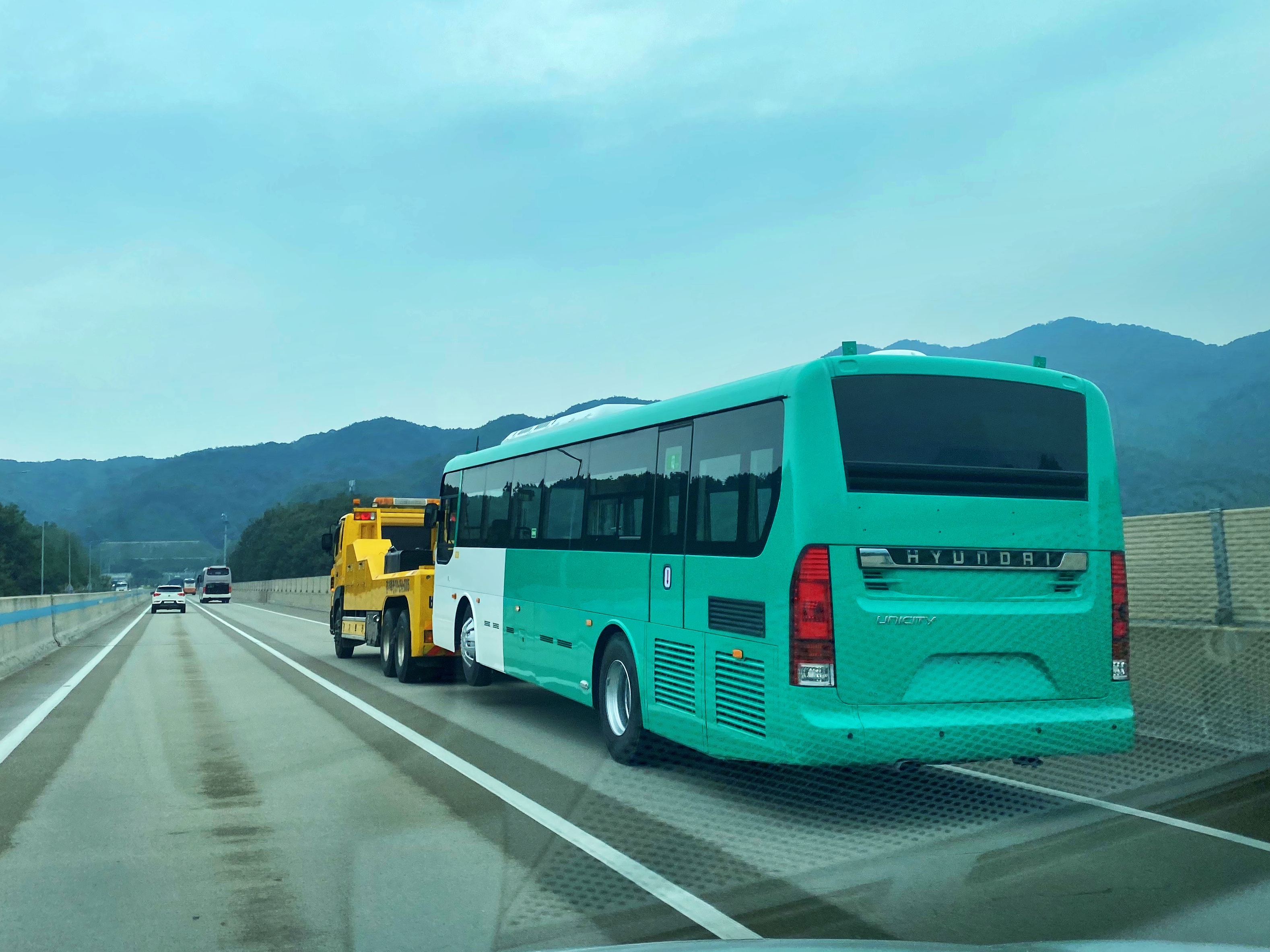 오늘 고속도로를 지나가다가 견인차와 로우베드 트레일러에 적재된 화물로 지나가는 버스 두대를 목격했습니다. 하나는 경기도 시내버스 도색. 하나는 연두색의 서울 지선버스 도색이 된 차량이였고 아마 전주공장에서 버스가 운행하게 될 지역으로 가는 모습으로 보였습니다.