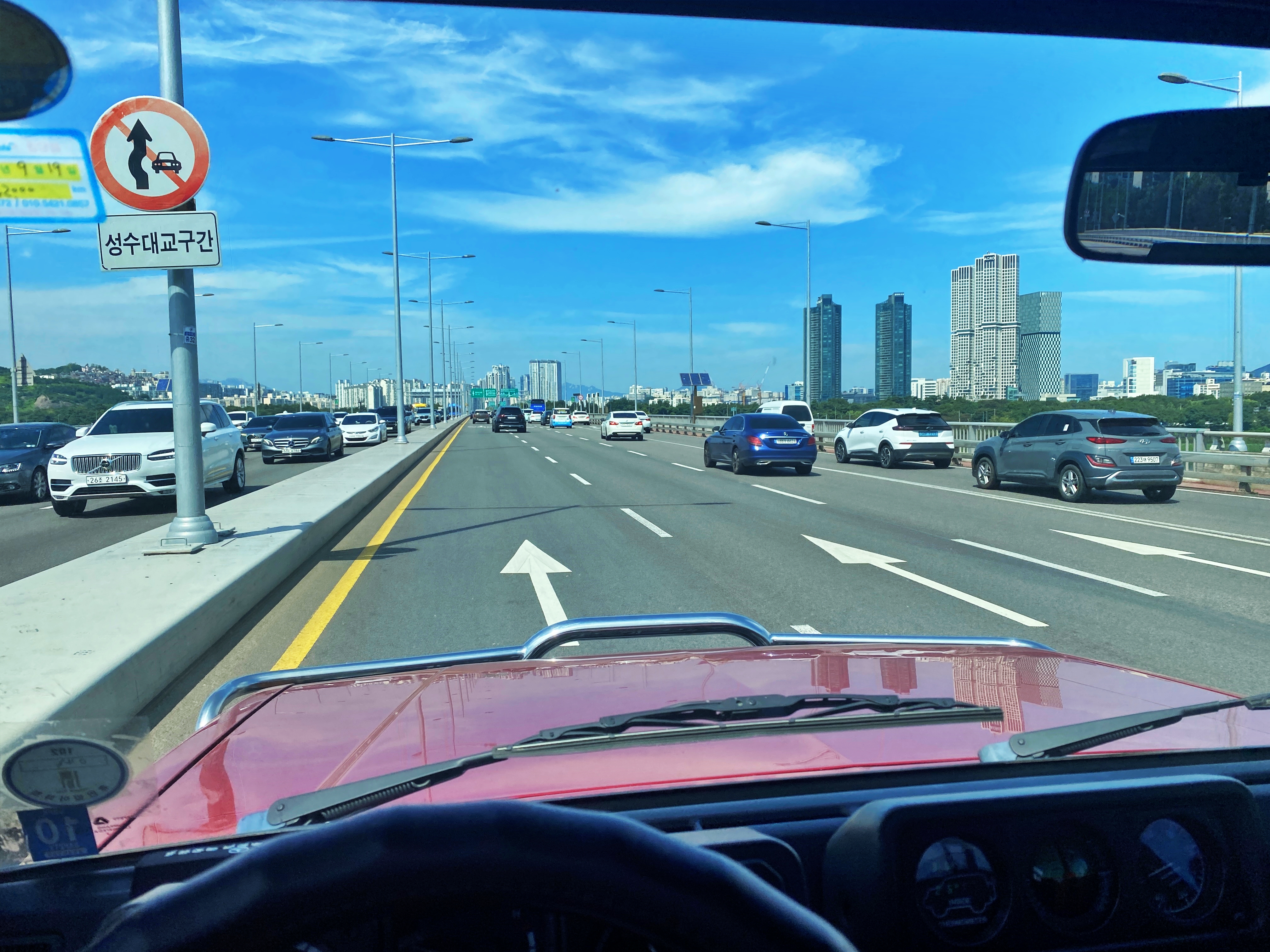 만 30년이 넘은 구닥다리 일본차 기반의 찌프차로 서울 시내에 입성했습니다.