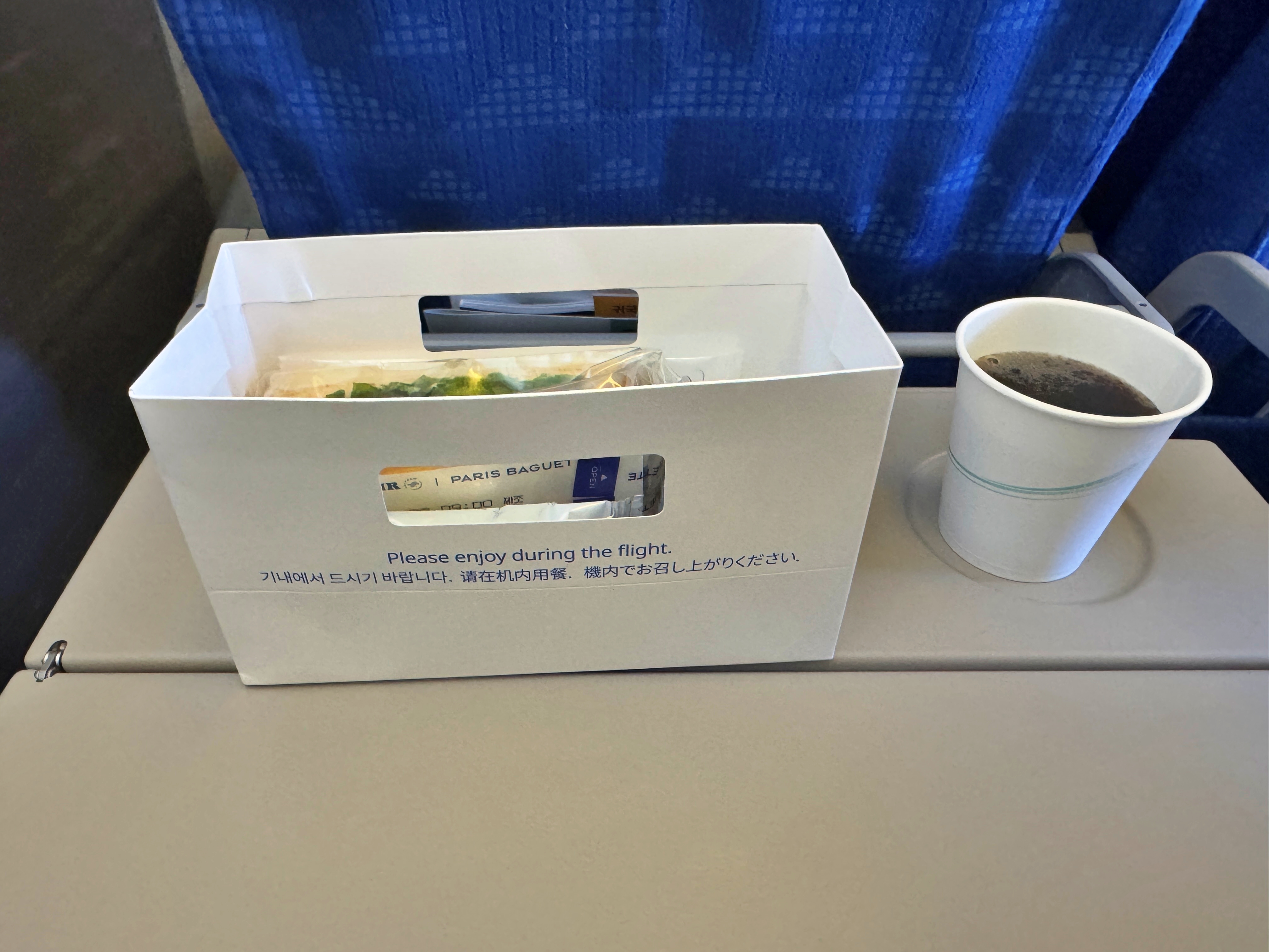 아침 기내식으로 파리바게뜨 샌드위치와 예감 감자칩이 나왔습니다.