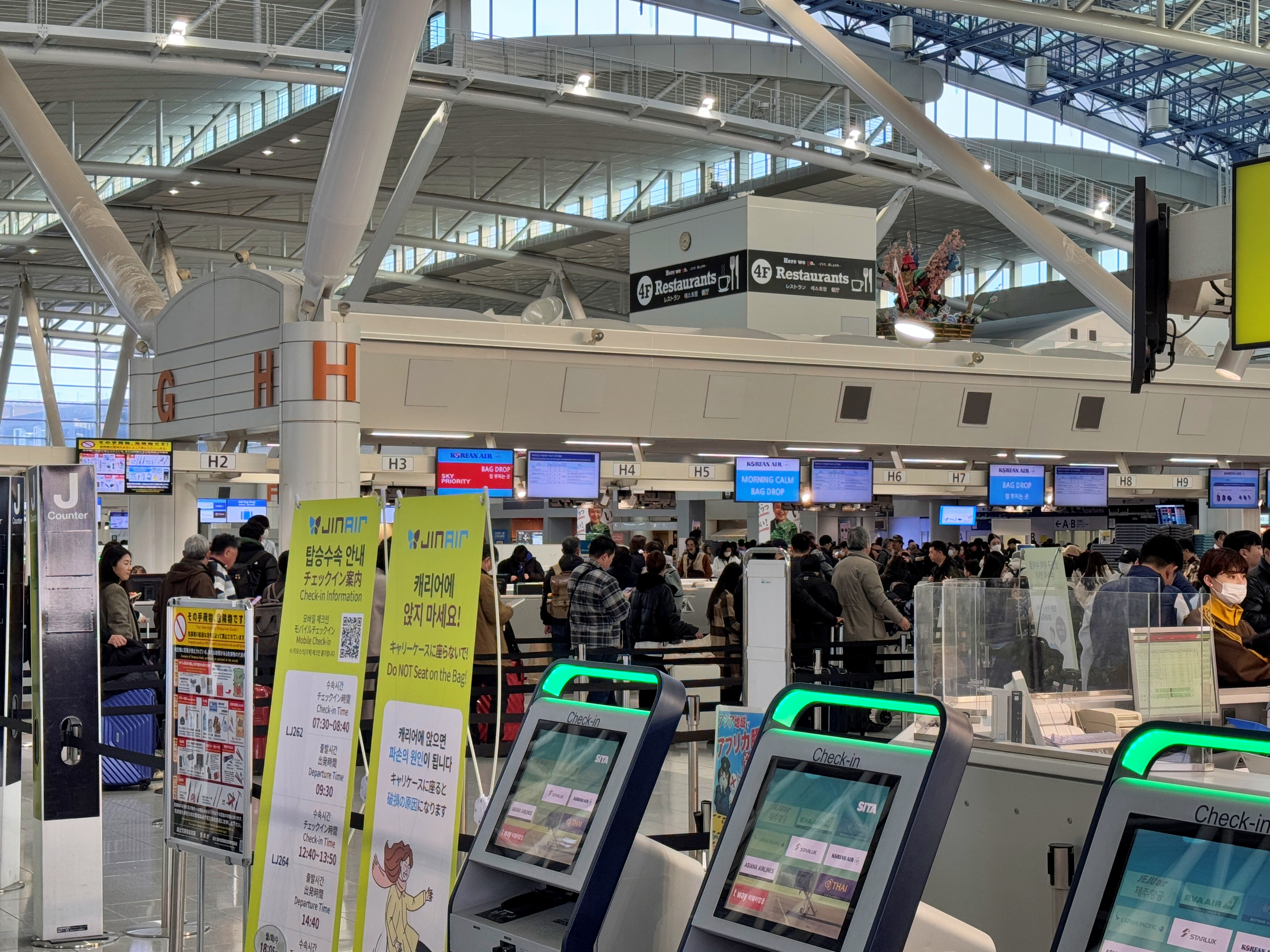 3월부터 수속장 확장공사가 마무리되어 지금은 저 앞으로 줄을 서고 검색대도 늘어났습니다만 이 시기만 하더라도 애매하게 오면 국제선 터미널 절반을 휘감고 돌 정도로 사람이 많아 수속장 입장까지 40여분을 기다려야 했습니다. 지금은 다 옛날 얘기죠.