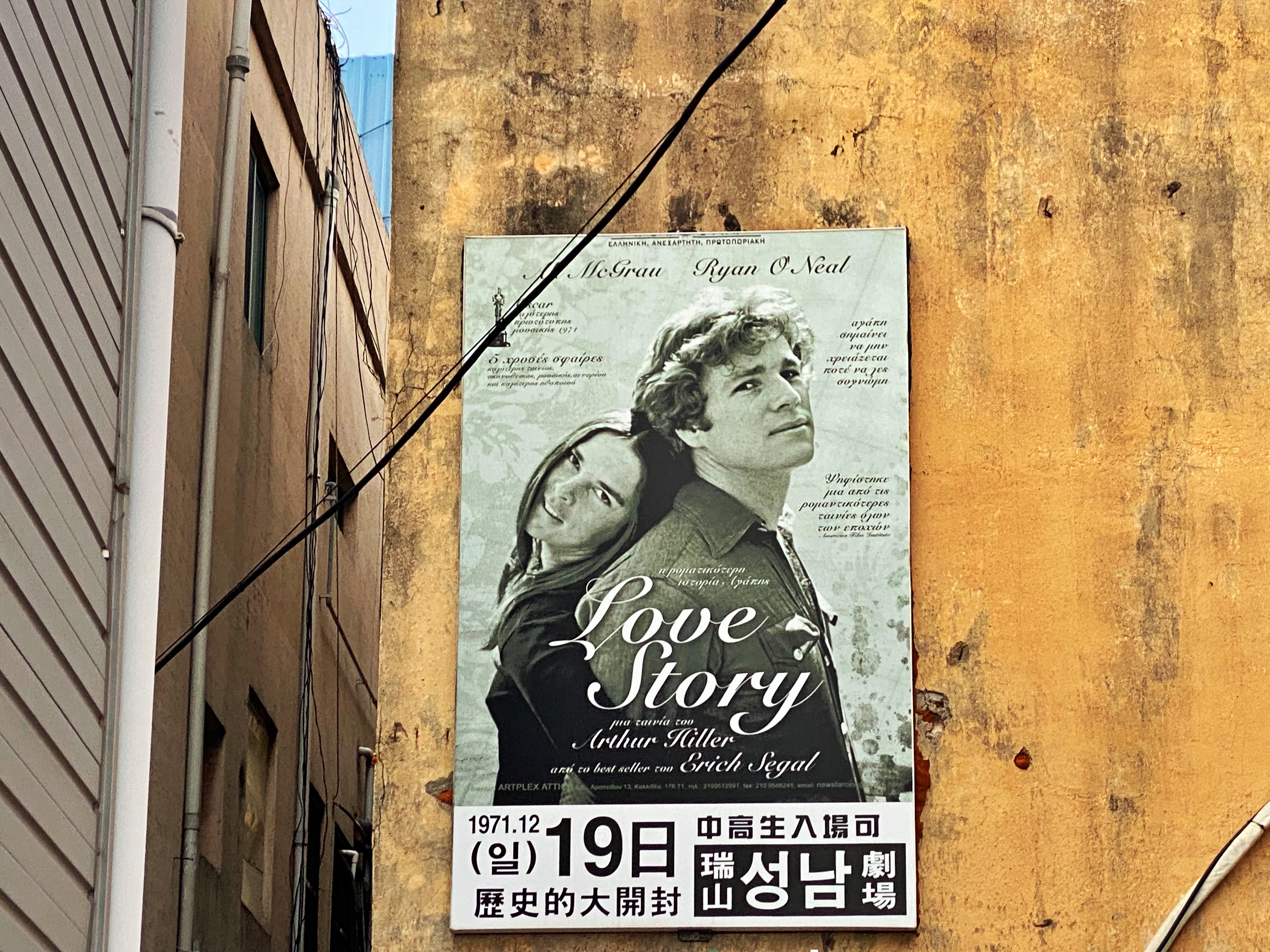 명작으로 회자되고 근래에도 OST가 흘러나오는 영화 '러브 스토리(LOVE STORY)'의 개봉을 알리는 포스터입니다. 1970년 미국에서 대 흥행을 이룩하고 골든 글로브 작품상을 수상했던 작품이 1971년 12월 한국에 개봉했고, 대도시가 아닌 지방 중소도시의 작은 영화관에서도 이 작품을 상영했던 흔적입니다.