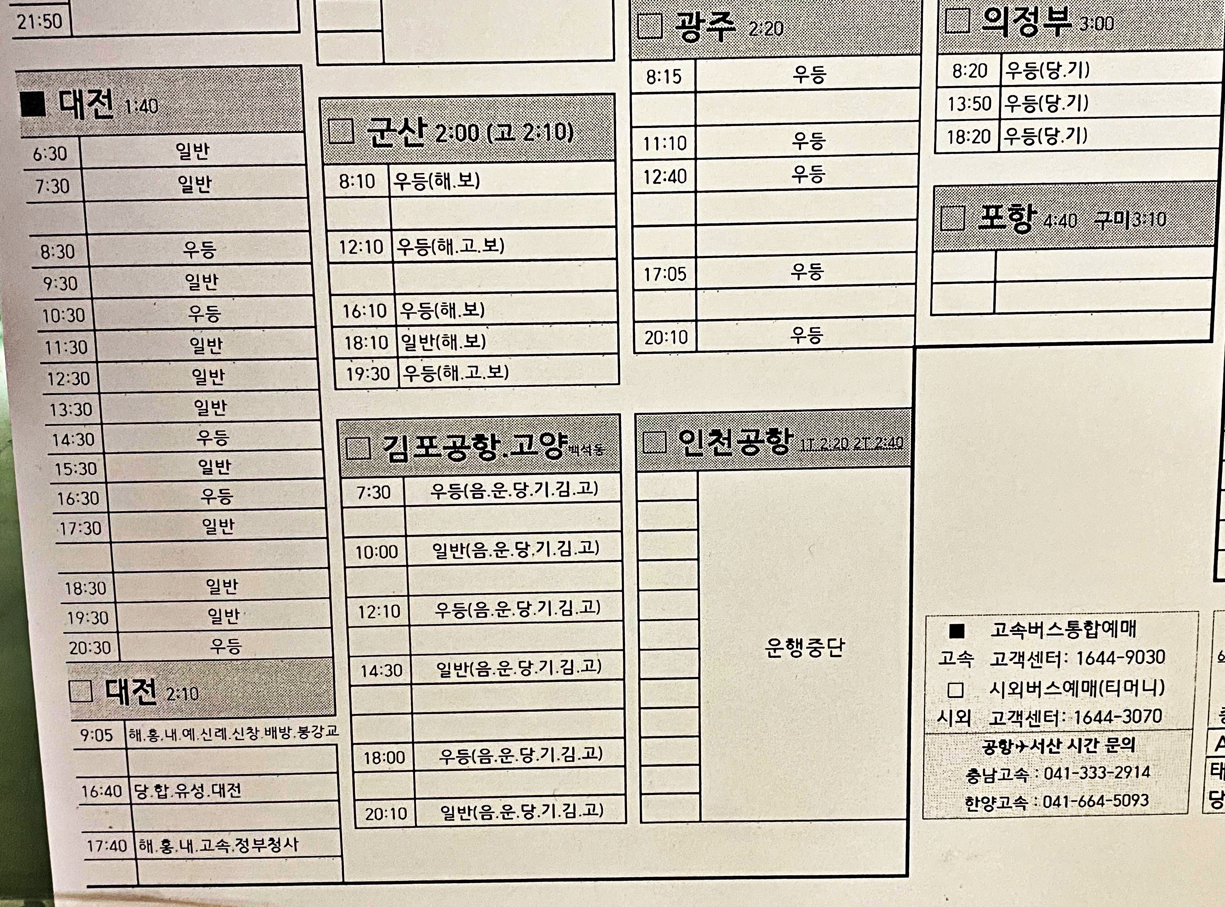 이전 시간표는 참고만 하시고, 새로 올라오는 시간표를 참고하시기 바랍니다. 그래도 코로나 이전 대비 80% 수준은 회복하지 않았나 싶습니다.