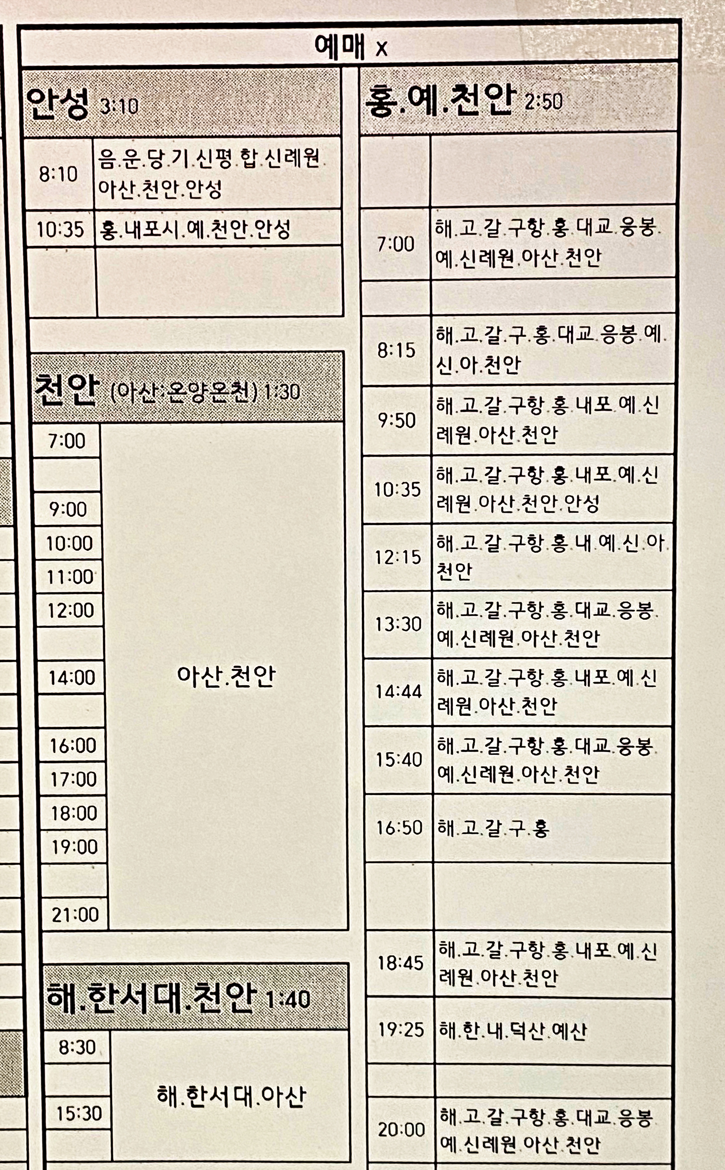 서산터미널 - 홍성 예산 천안행 일 12회 운행